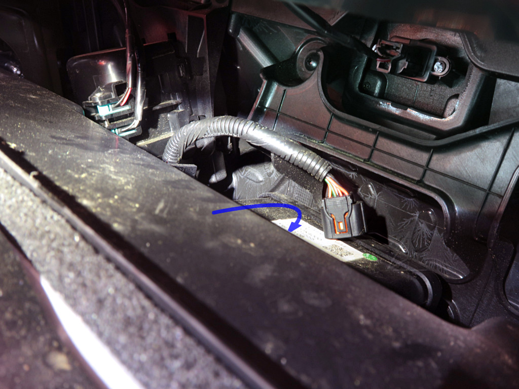 Here's the VESS box in context, in a shot swiped from a forum post where the owner had removed the entire front end plastic of the car. It is actually a CANbus node, with its volume and pitch of playback commanded by vehicle-speed data from other control units on the network. Another owner figured out the relevant packets and reproduced the car's operation of it, and documented his results in the same thread. |