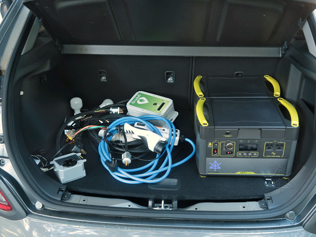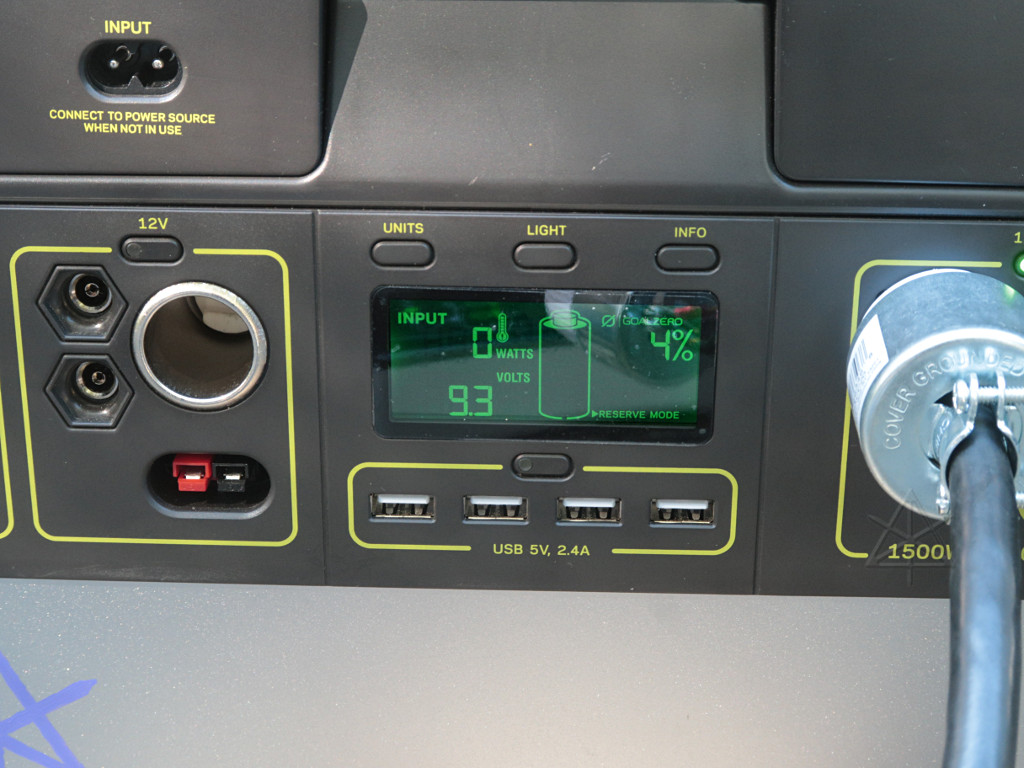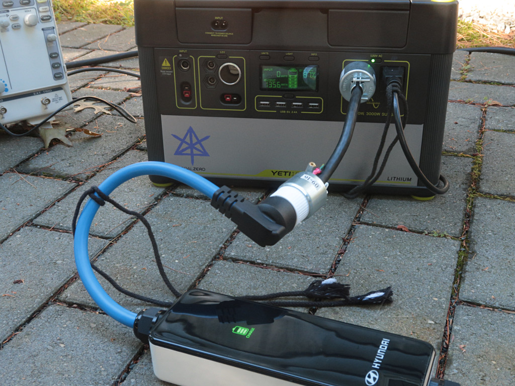 Towards evening, a healthy quantity of energy had passed through the GoPlug, still going strong, and the car was approaching full. The time estimate was way off, though; I suspected all the interrupted level-1 screwing around with the Yetis had confused things a little. |