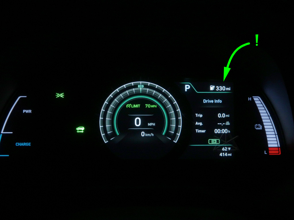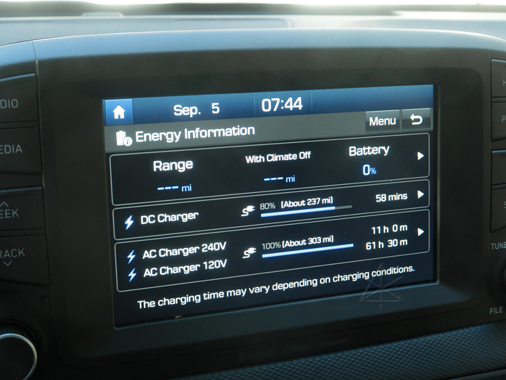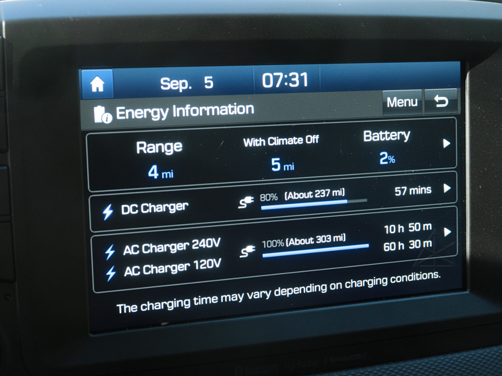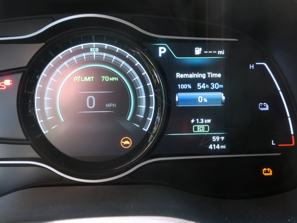 The dealer had sent me off with a 100% charge in the battery, and I assumed that they had probably kept the car topped up close to that level over the months it was sitting on their lot. That's actually not so good for the lithium chemistry, which is most stable around mid-charge over long-term storage. While battery management systems have gotten quite good over time, their notion of net capacity can still drift, so it pays to let one re-calibrate its limits and coulomb count once in a while. My plan was to run that charge down as far as I possibly could before recharging for real. Everything I'd done with the car had been on that charge so far, and finally I was down to about 9% left one morning and figured this was the day to run 'er all the way down. |