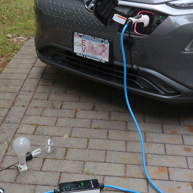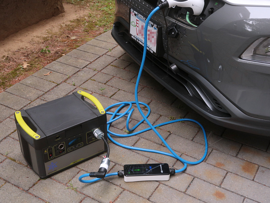 Next experiment was the potential for "rescue charging" on the road, using portable power packs I'd recently acquired for outdoor events. This *would* be a 120VAC scenario and thus slow, but each kilowatt-hour you could bring to a stranded EV could potentially get it four or five more miles down the road. Thus, perhaps these boxes could be like a very tiny gas can in the trunk. |