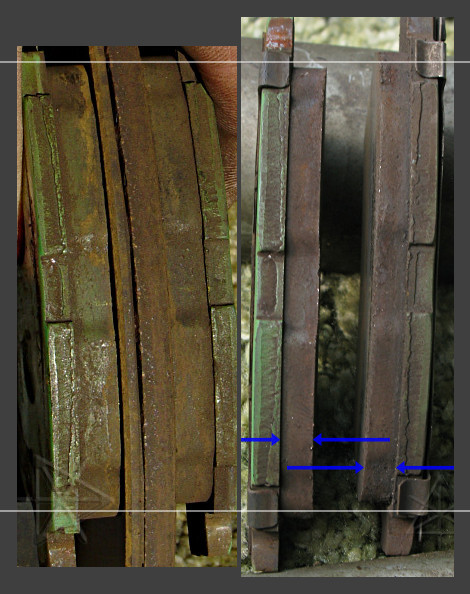 Pix are cropped/resized to mostly match each other, and alignment lines added to match up pad material edges