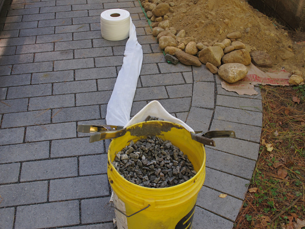 A short time later she'd made significant progress and kept things very tidy, producing a perfect-width trench. It's nice to have clueful friends who like pitching in on physical work! |