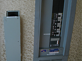 House-lights dimmer closets, in the service hallway. |