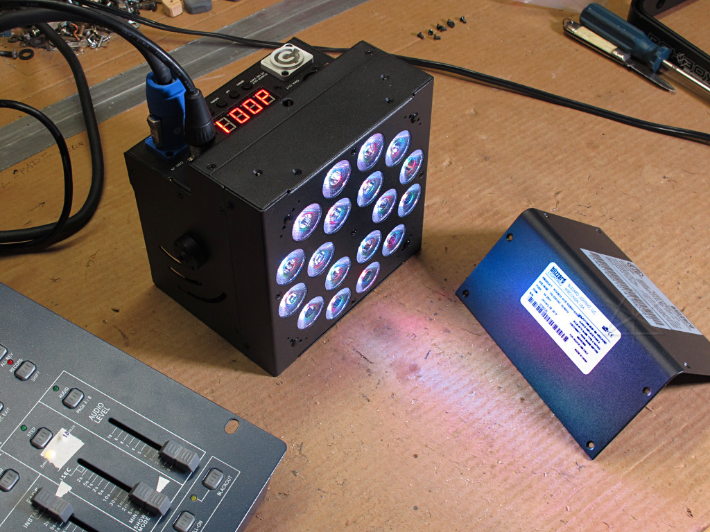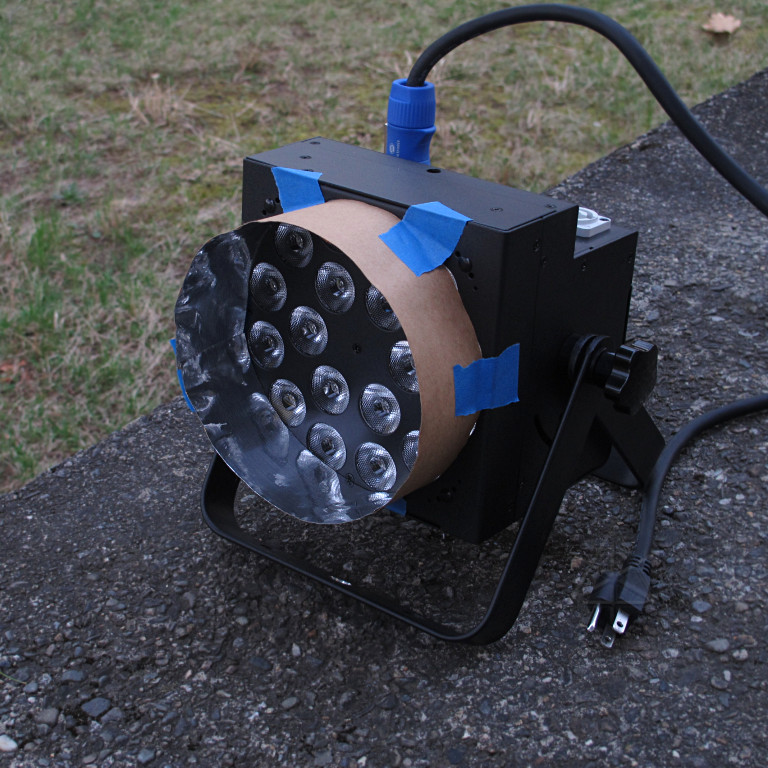 Amazon seemed overrun with cheap DJ-grade gear that I knew wouldn't last or throw nearly enough light. I cruised some of the more professional-market oriented places, comparing photometrics and prices, and LONG story short(ish), a family of PAR-style wash units from Blizzard Lighting came out on top. In particular, the Rokbox 5 RGBAW seemed the most suited for the need -- 26-ish degree beam, more rated raw output power than most of the others, and half the price of anything with zoom capability [which I didn't need]. And *out of stock* at several places, as they've evidently been quite a popular unit. When I called Full Compass to ask about their stock, not only did they still have a small handful left, they offered an even deeper discount price for the quantity I needed. Awesome, *done*. And the shipment arrived astoundingly fast. |
