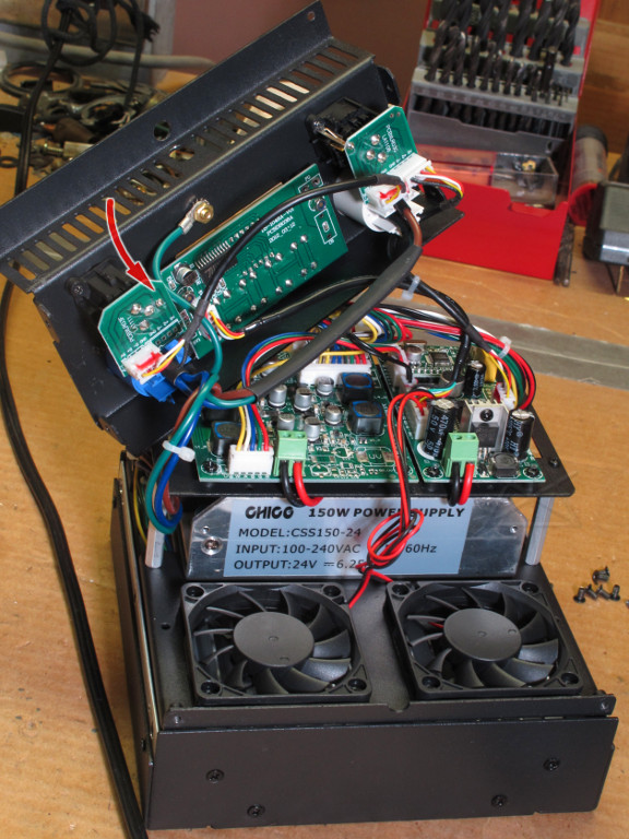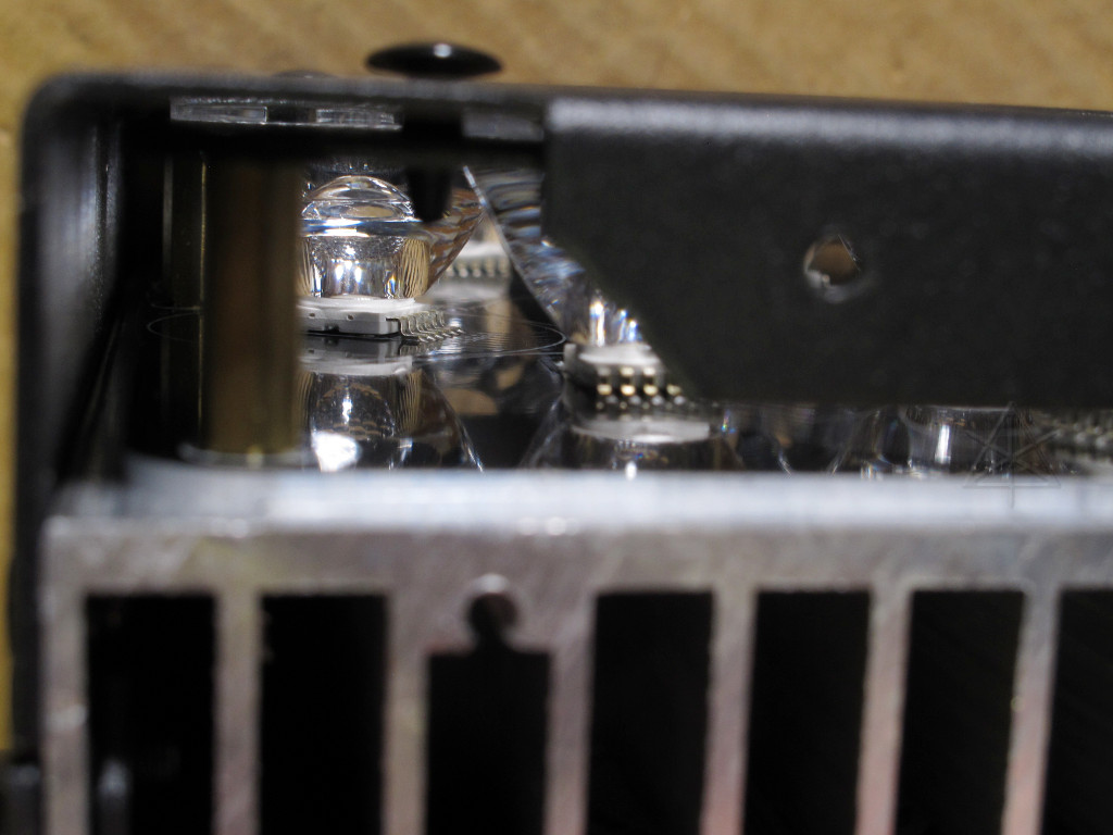 The LED driver board is at the lower left where the inductors with blue