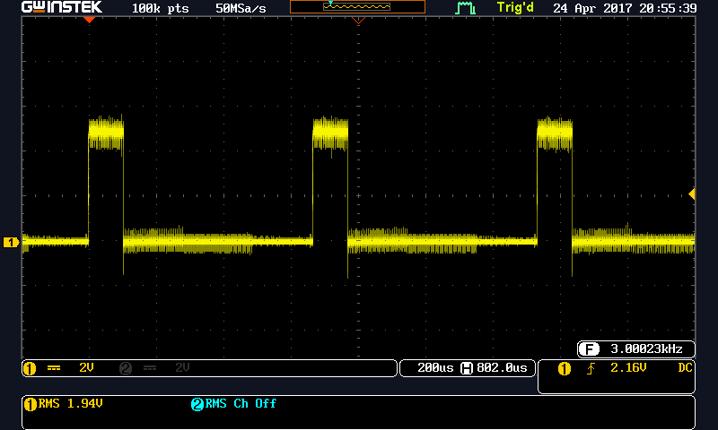 the non-instantaneous drift of the resulting PWM is clear to see.