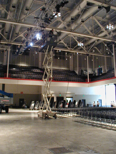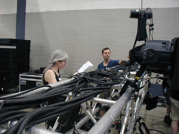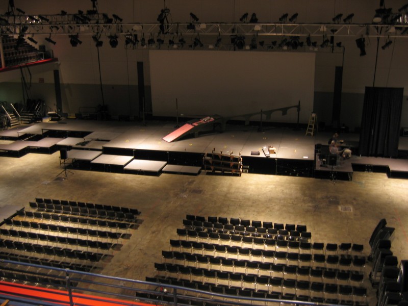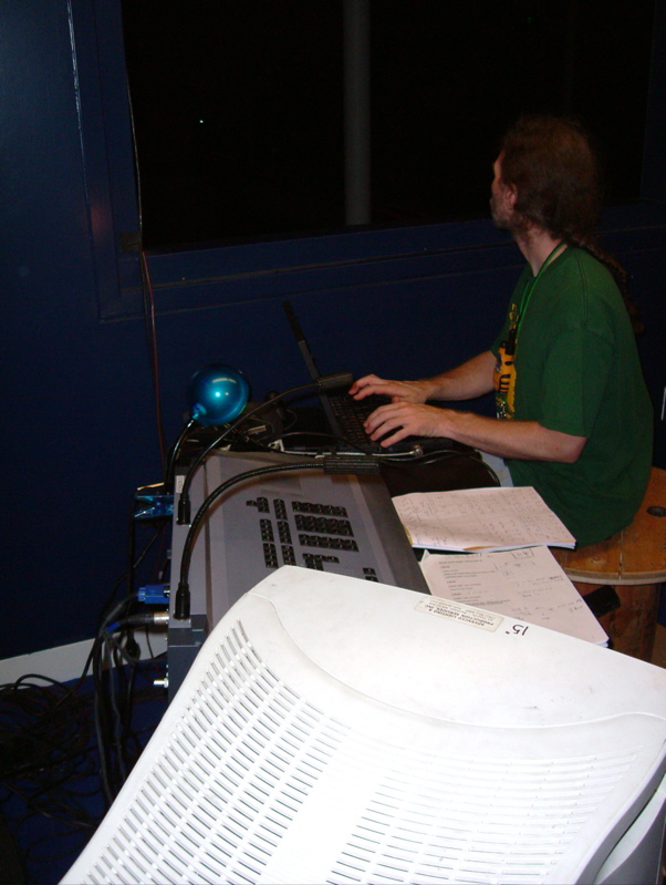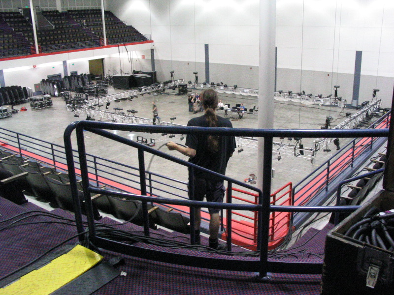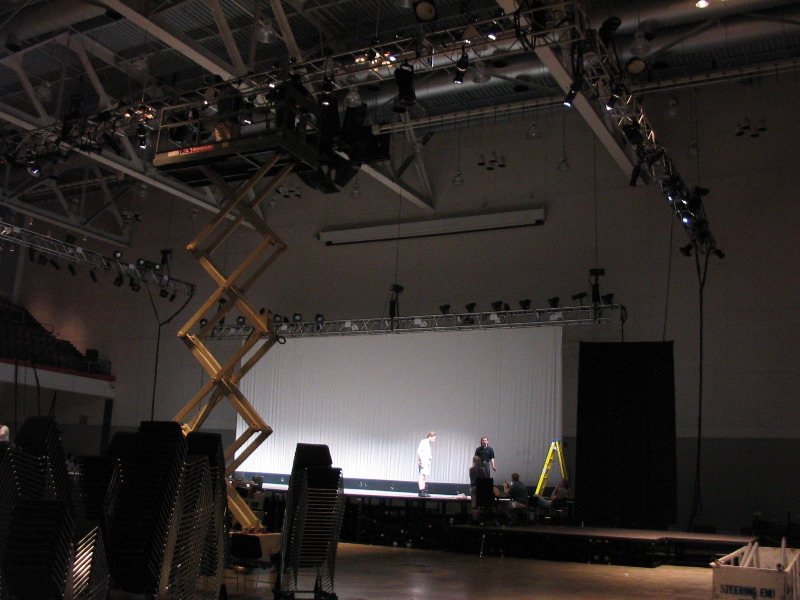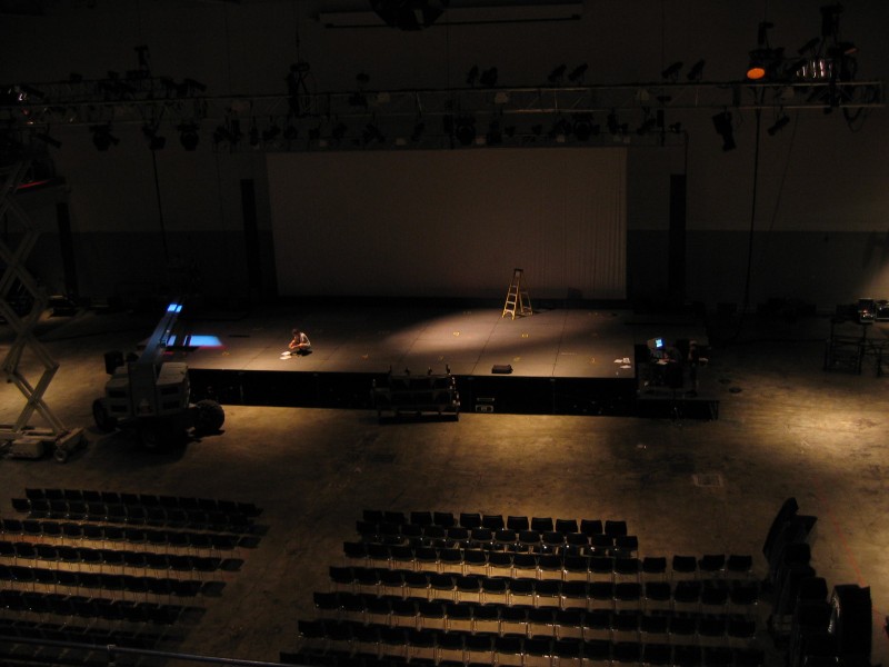time-lapse cam tripod is on top of it. LX booth is far left [fluorescents],