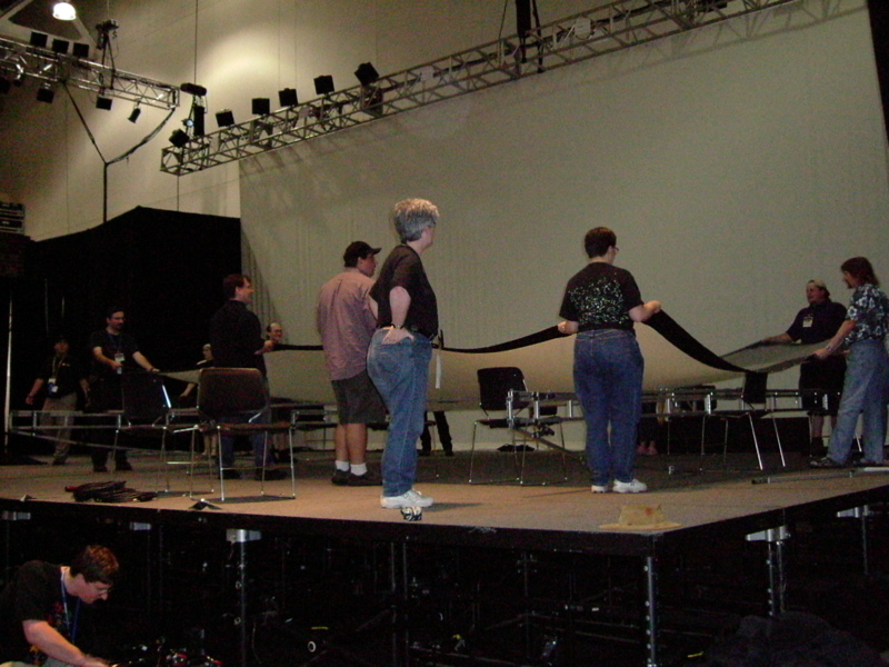 Back down on the floor, it was screen and drape time. A 20x15 Fastfold needs