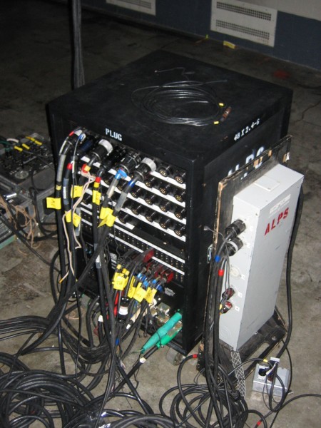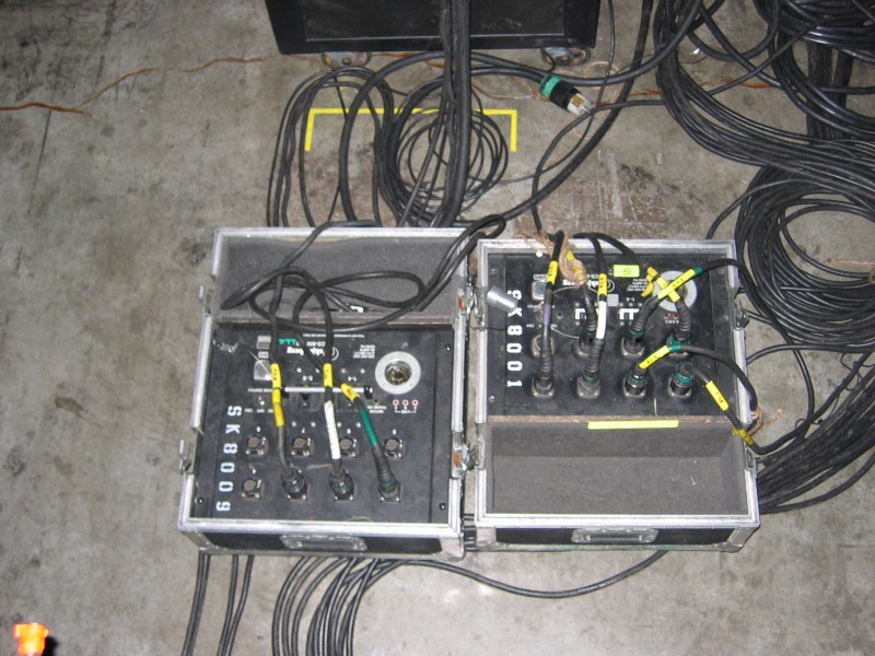 One of the two dimmer packs and companion distro boxes. 48 dimmers per side,