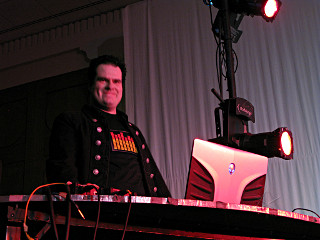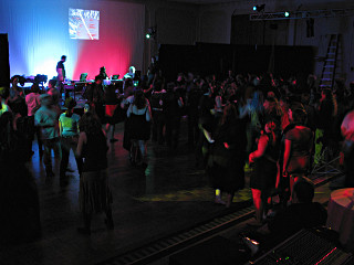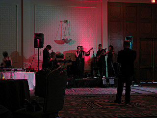 For this event I recircuited to a few of the "dance-floor-only" fresnels but left most of the stage wash available, since there were some presentations along the way and people would occasionally get up on the stage in front of Johnny Z. in costume and sort of lead the room's dance. |