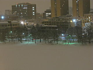 Snow over the Charles [shot by Demetri from the window during the tech party] |