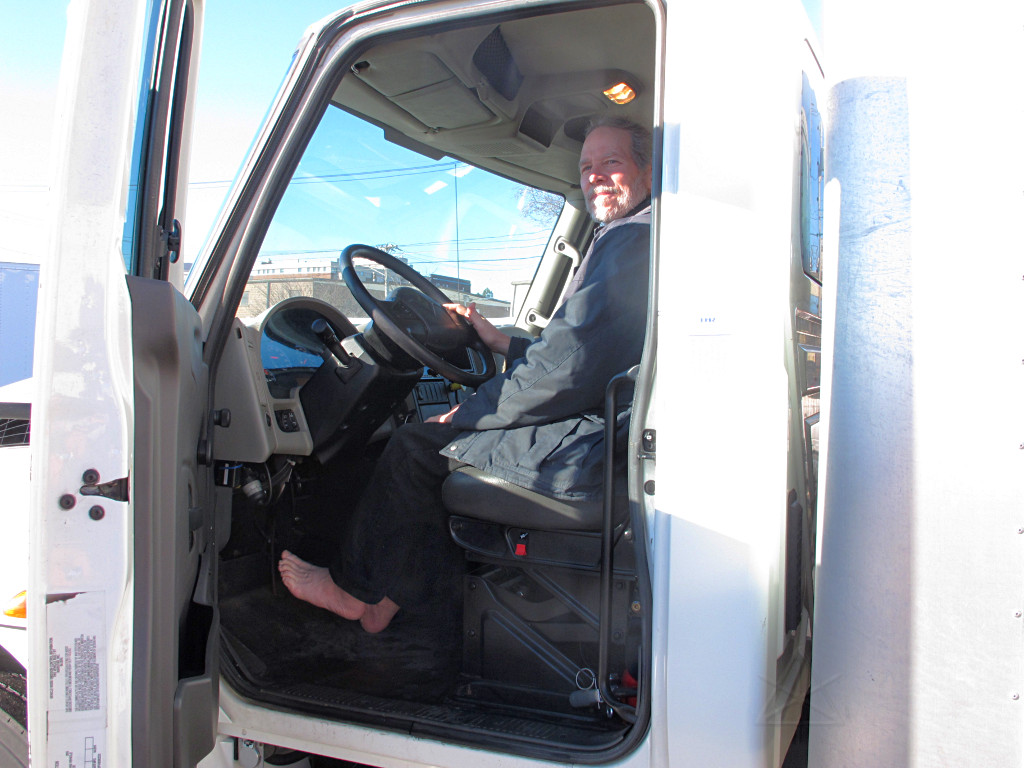 Anyone who is horrified by this picture needs to go read up on the facts, and understand why this is a *safer* way for me to drive a truck. Sensitivity to what controls are doing is always far better than klunking through the process in little podiatric prisons that can't feel exactly what's going on. Those enduring MYTHS need to be dispelled. |