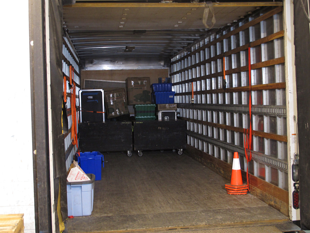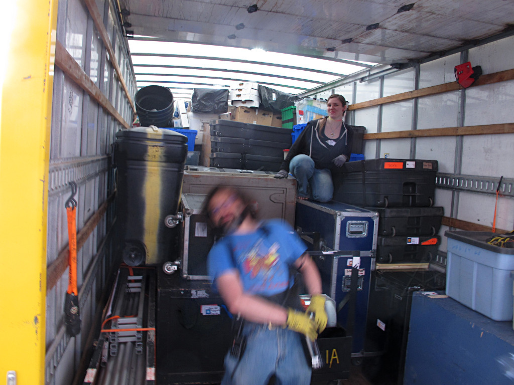 We also had a larger-scale idea in the works -- in an example of early attempts at better integration between Tech and Logistics, we [a very loose "we"] had cooked up a plan for the Monday strike and loadout. The intent was to collect as much of the *large* tech gear that could be packed quickly and get it onto a truck as a "short load", to be taken back to Storage on a quick trip using a skeleton crew -- just to get some large-volume stuff out of our way before the main truck-loading. |