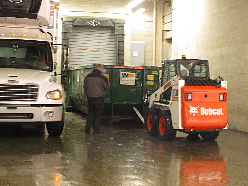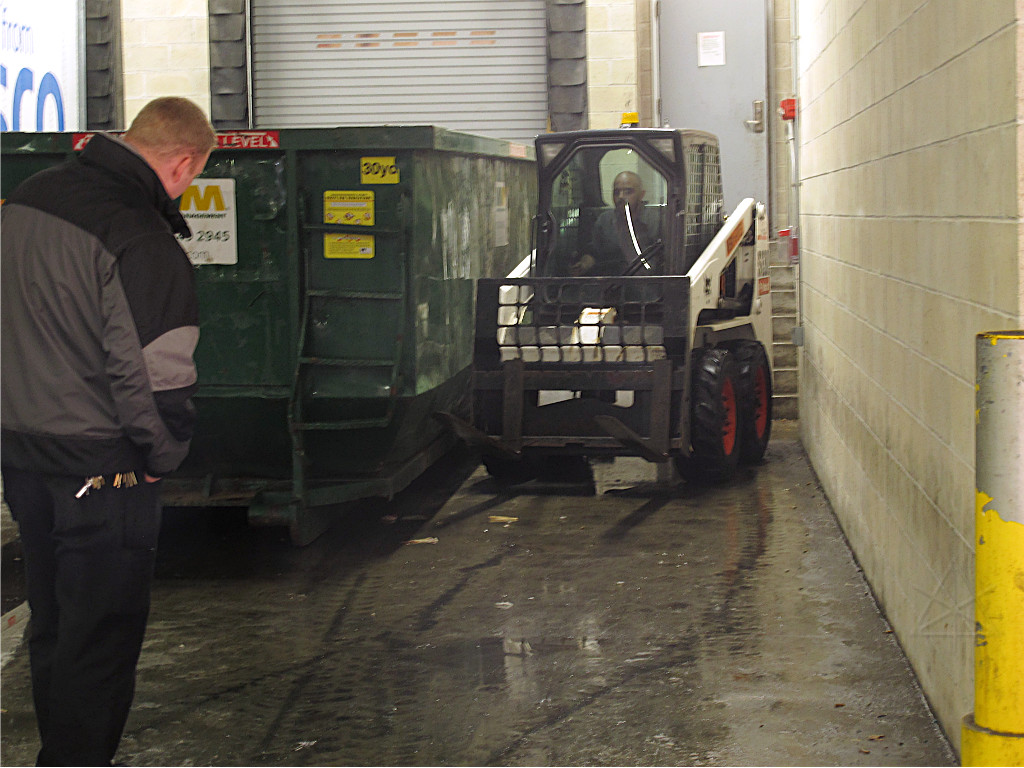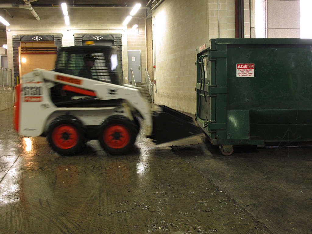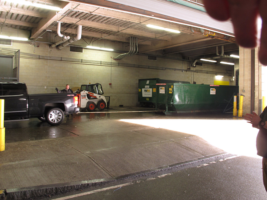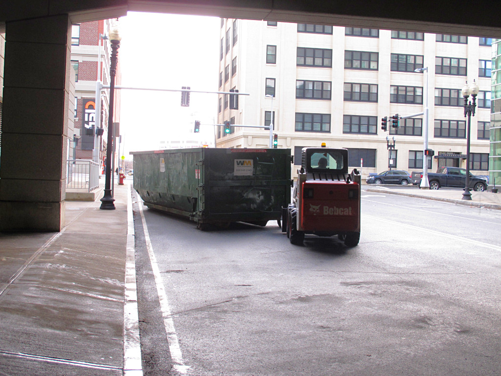 But the hotel folks very nicely tried to accomodate this, and decided to move the dumpster somewhere else for us. This turned out to be far more difficult than they anticipated, mostly due to all the water on everything. |