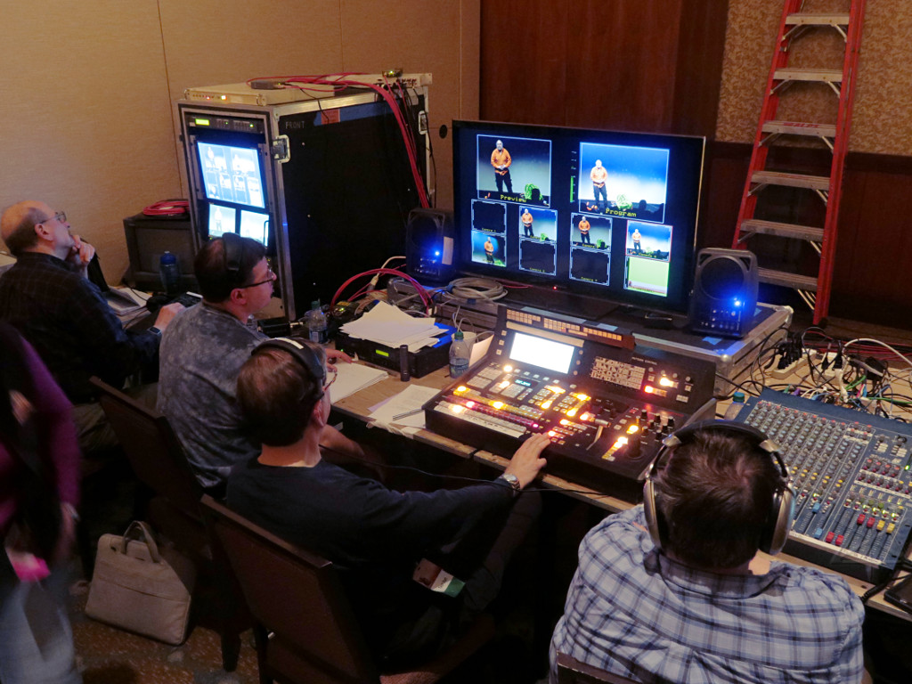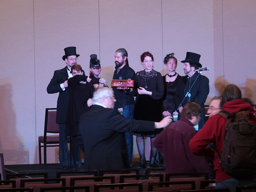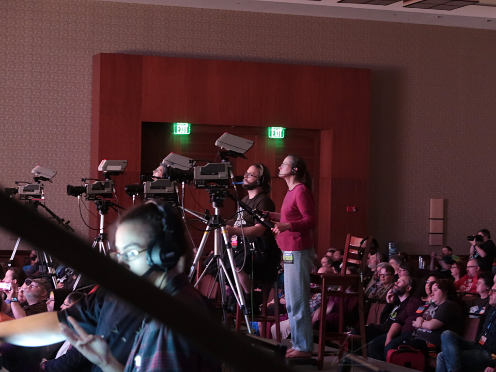 The actual Masq run crew was off getting dinner during this; we've decided that it's a good idea to relieve them and have a whole different crew swap in for halftime and in the case of camera ops, finish out the event. Many of us used to stay and run the entire evening for these things, not to mention being in rehearsals for many hours beforehand, and unless one has superhuman amounts of enthusiasm, that can be a real grind. |