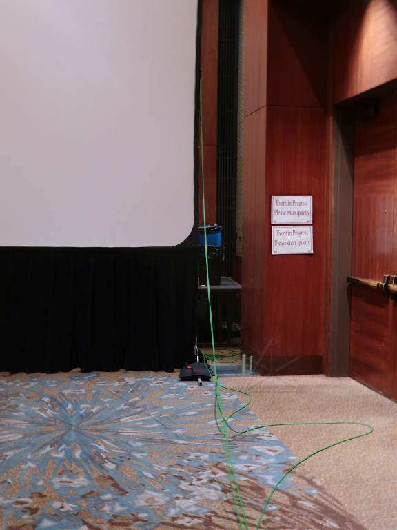 At least three people got tutelage or refreshers on flip-coiling and cable management over the course of the weekend, including one of the fellows from the local barefoot hiking group who had also gotten interested in generally helping at Arisia -- with us on the tech crew or elsewhere. He had actually studied my ancient tutorial on over/under winding and was already doing it with his own cables at home. |