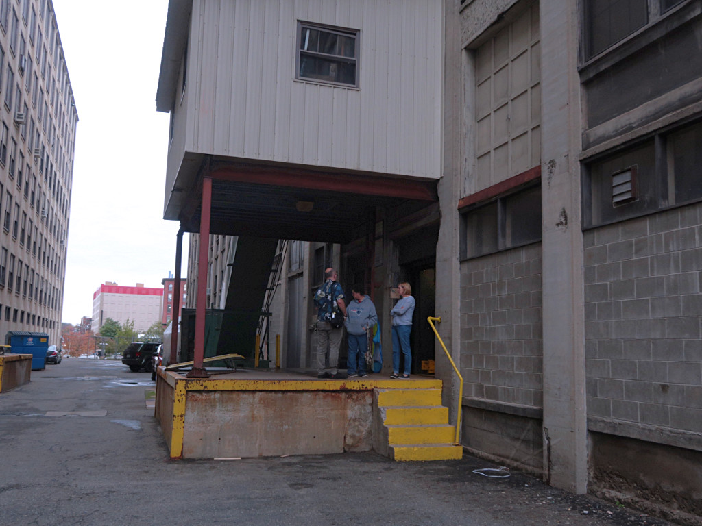 to the building.