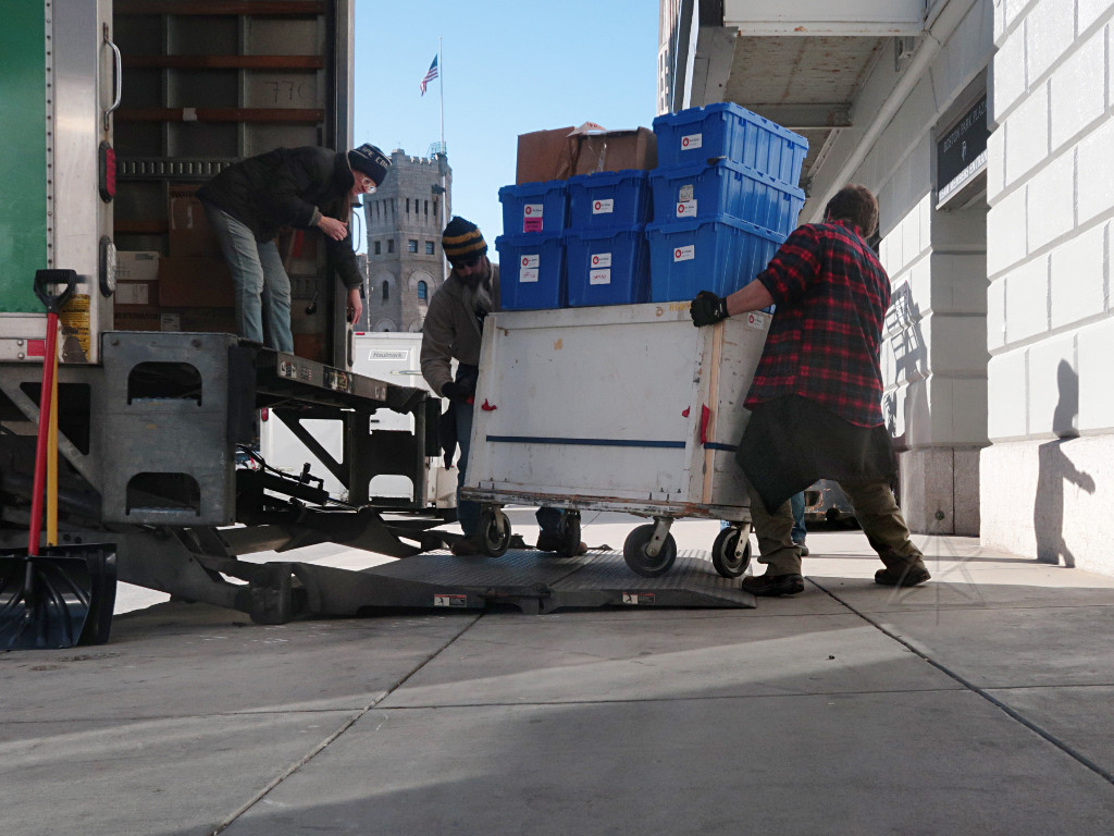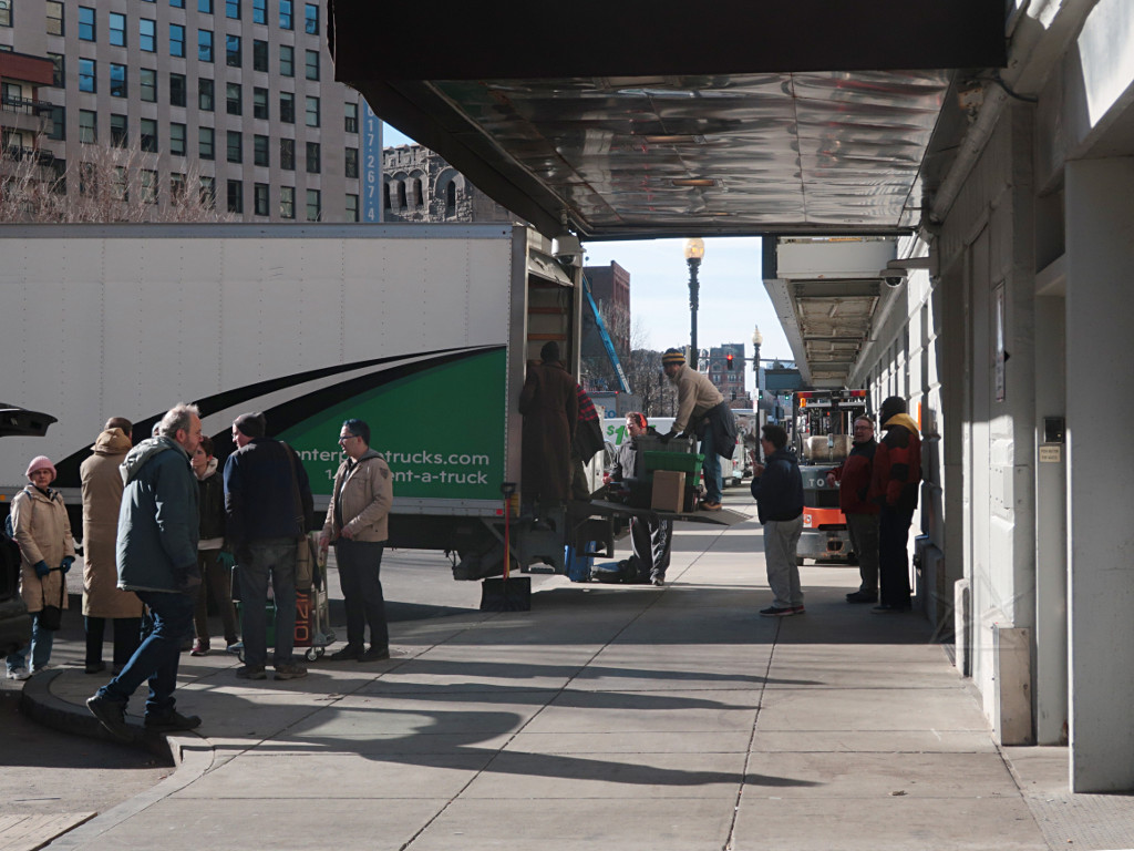 sidewalk and around to the curb cut at the loading dock, then liftgated
