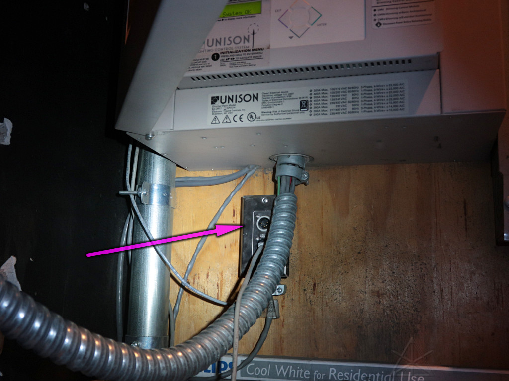 Here's the DMX input to the house system control, now ETC Unison/Paradigm