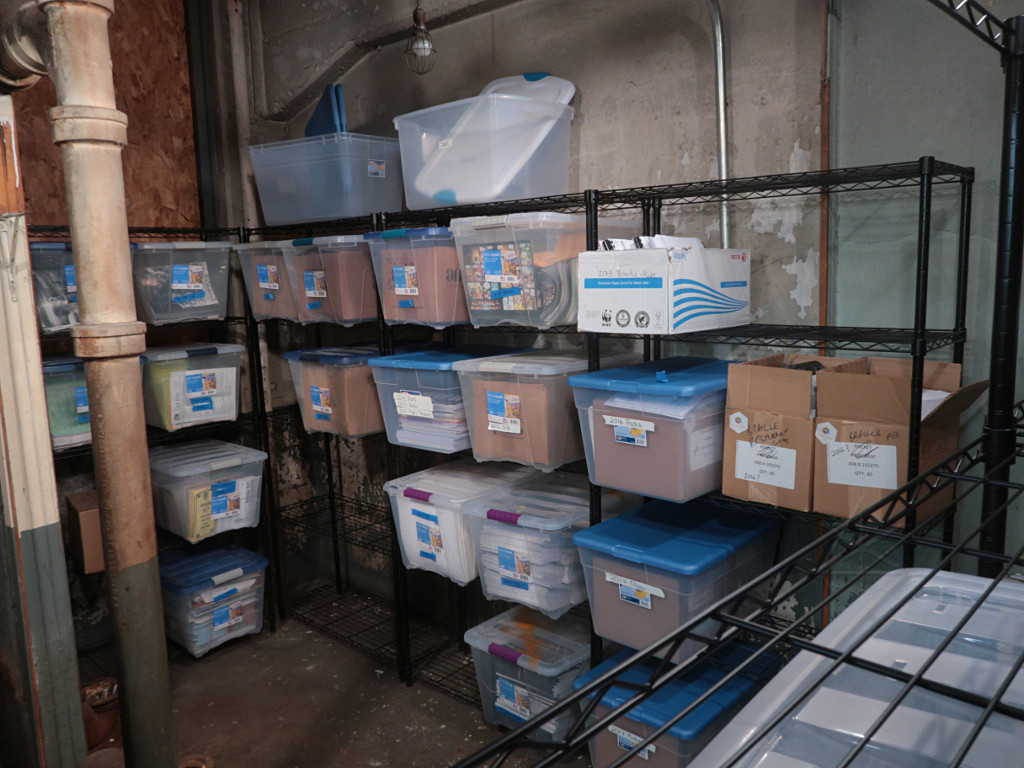 The scary room in the back with the toilet traps was dedicated to the long-term archival, with more new shelving put in to hold it all. Lots of room left for further hoarding. |