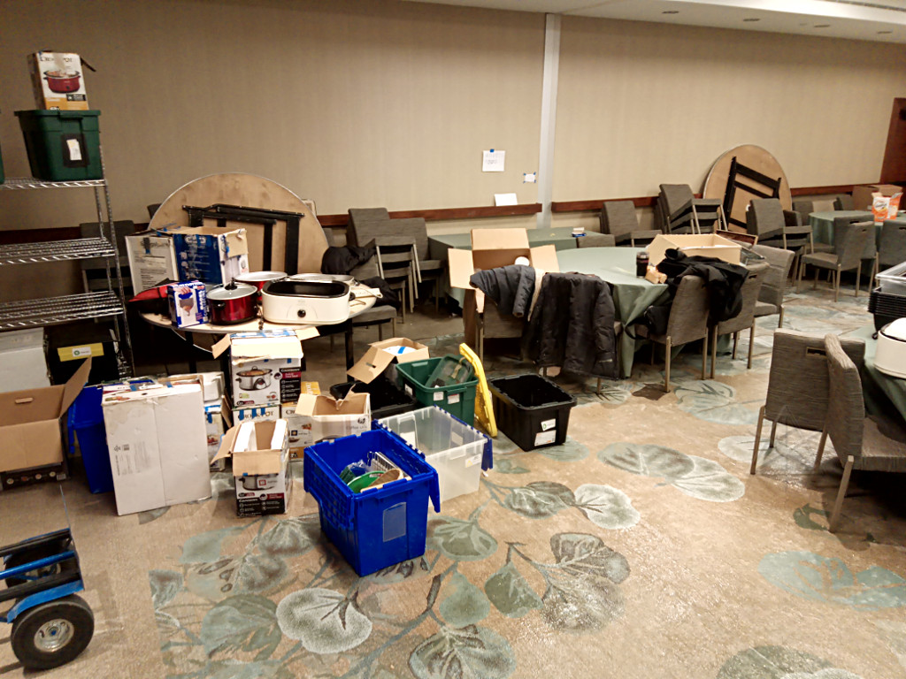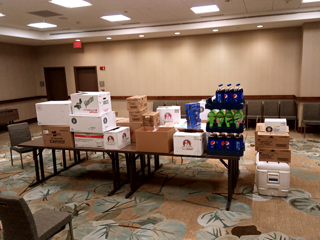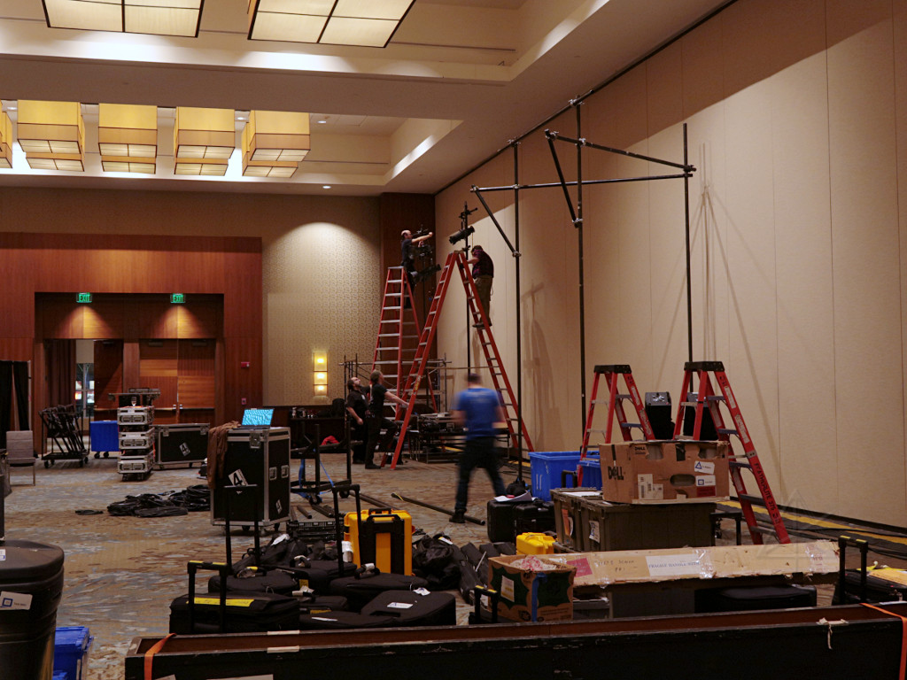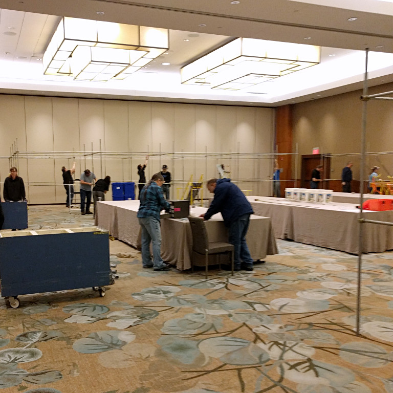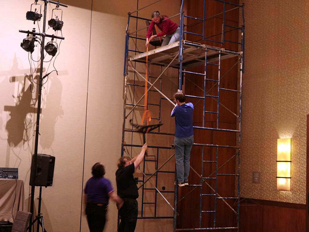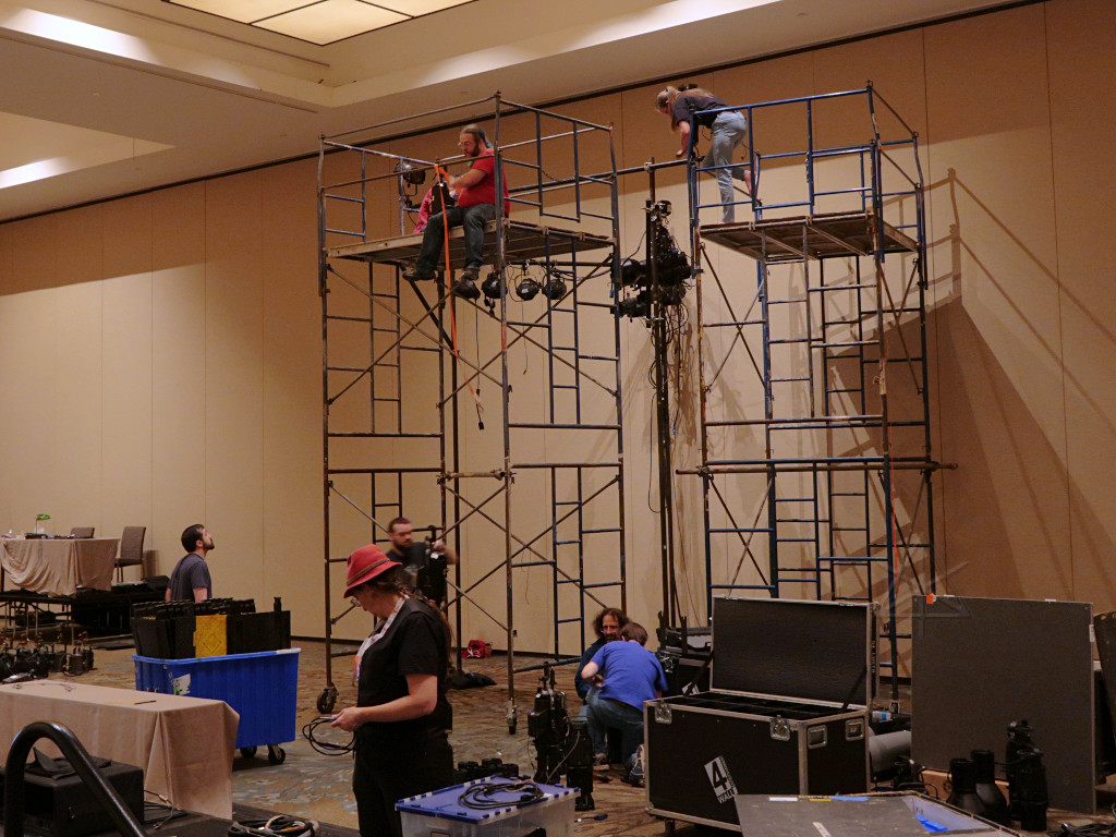Buffer space for us had been made available far earlier than we originally were given to understand, when initial timelines from the hotel had said that we weren't going to get *any* of it on this side until after 6:30pm. That crisis was semi-averted when they realized that they could accomodate us loading into some limited areas, as long as we were quiet about it. It still meant schedule slip, but not as bad as it could have been. |