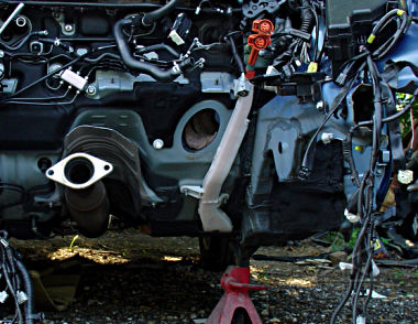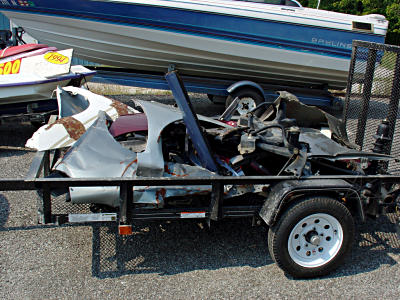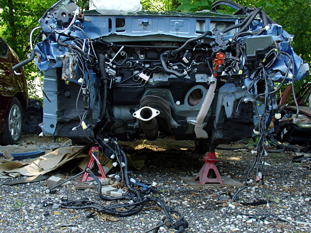 Another one in similar condition, but with even more of the front end gone. Things like the exhaust system and battery cables and harness bits remain to be recovered and maybe eventually go into another car.