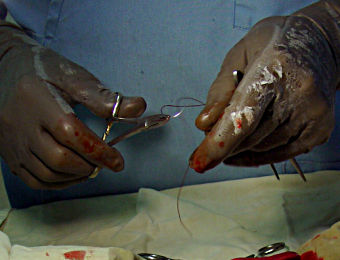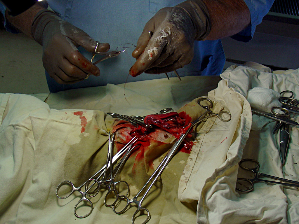 While the Sawzall was slicing and dicing, Steve's dad was inside taking something else apart. WARNING: not for the squeamish! Steve shares building space with his dad's veterinary practice -- an odd mix, but seems to work. In fact, I think this was the second spaying operation that took place that day. What I found fascinating is how dogs can still randomly yip and bark while totally out of it under certain types of anaesthesia. Steve's dad also made us really awesome lunches with grilled steak and local corn both days I was there.