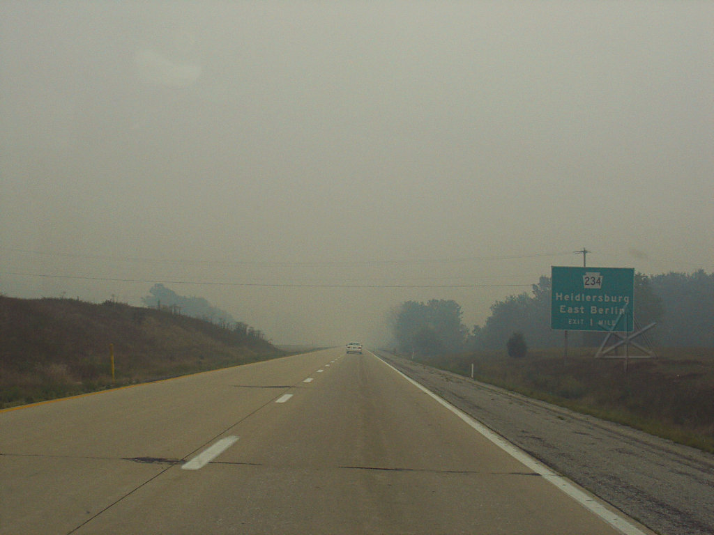 Got going again early the next morning, cruising through patches of that infamous Appalachian fog that hangs in the valleys. After a while on the interstate I branched off onto US33 eastbound, which for all intents and purposes is every bit as fast as an interstate with two lanes each way and a full median. Although every so often it necks down into a twistier two-lane where it hasn't been expanded yet -- just the type of road I was looking for.