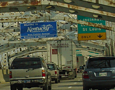 I dropped a little farther south into Louisville KY [via its rush-hour jam-ups across the bridge] to pick up I-64 east. The welcome sign doesn't lie; like most of Indiana is endless cornfields, western Kentucky really is endless horse farms. Huge, rolling pastures with meticulously maintained fences.