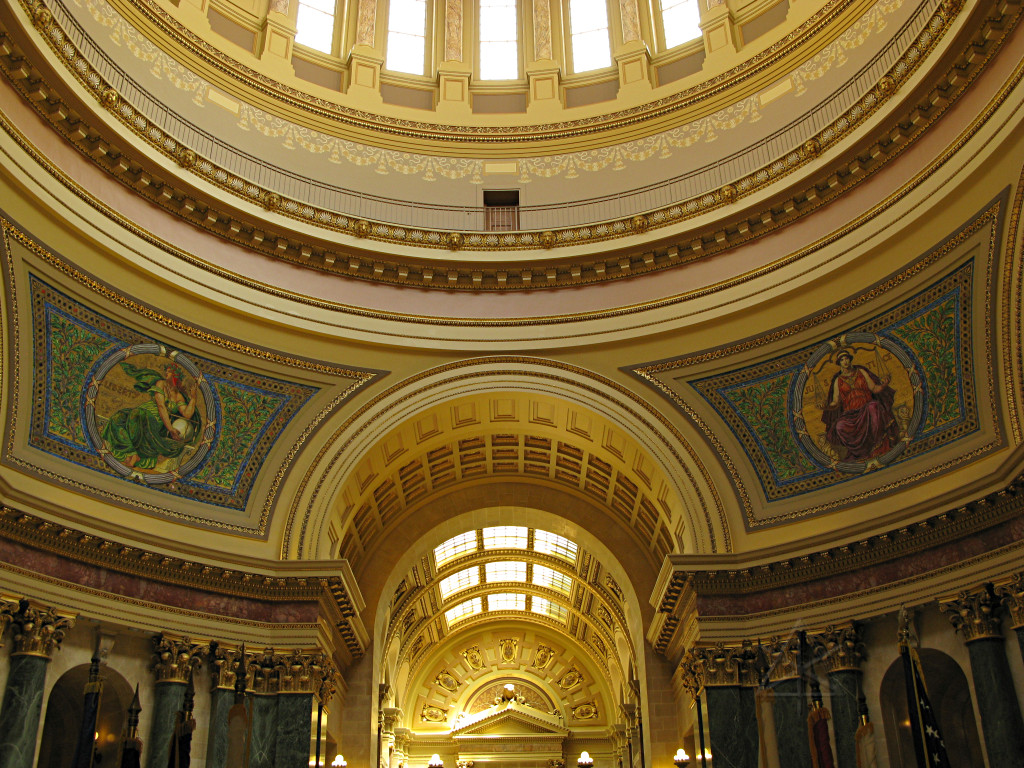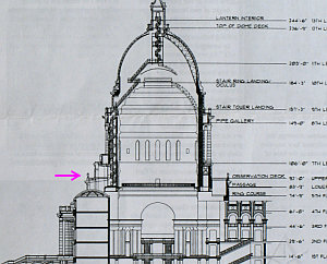 I finally tore myself away, figuring I'd already gotten far too many pictures of the place, and wandered a circuitous route back toward the lake. For those that may disagree about my data volume, there's plenty more info at the official capitol site that does include some text about what one would find by going up into the dome and lantern gallery. Well, up until 1931, anyway. |