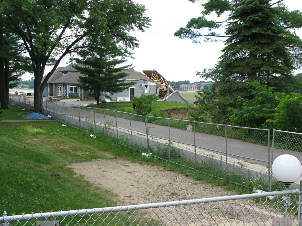 It's pretty clear from this that only a narrow and not particularly tall strip of land separated Delton from the Wisconsin River, and once the overflow got going well enough to start cutting its own channel, that's all she wrote. |