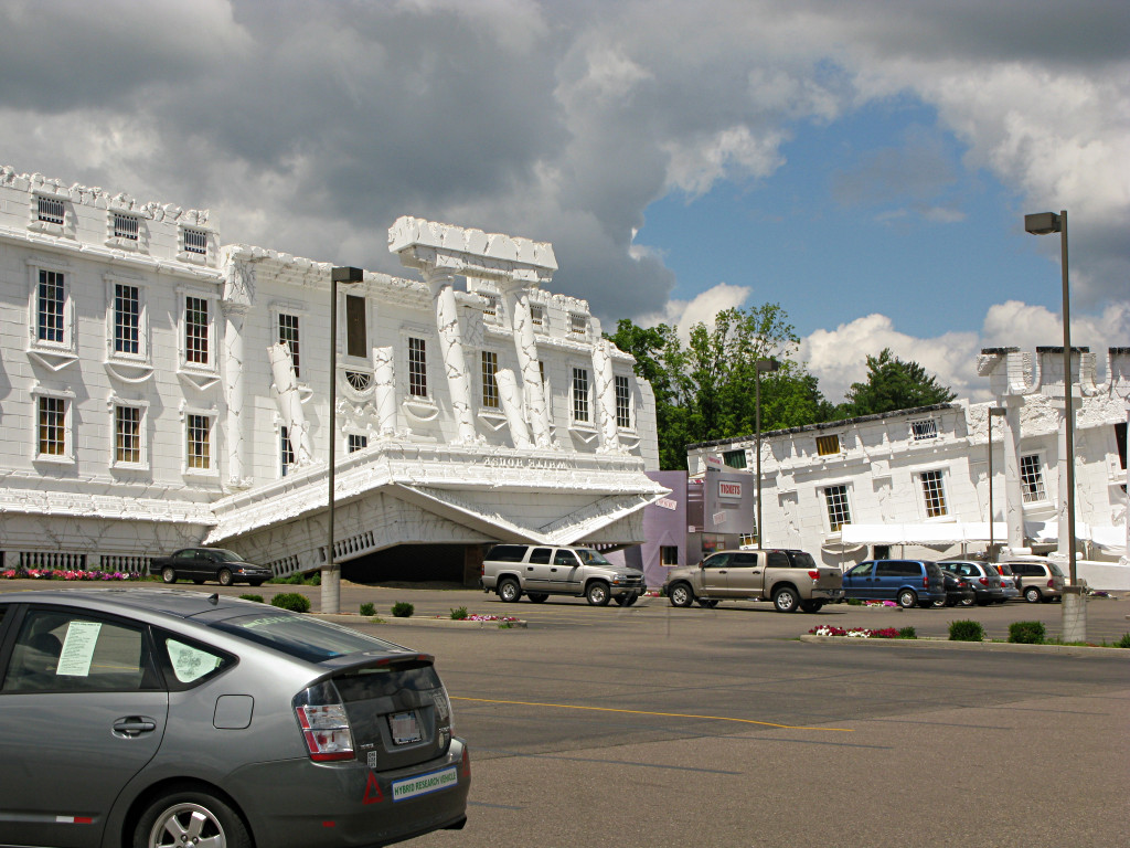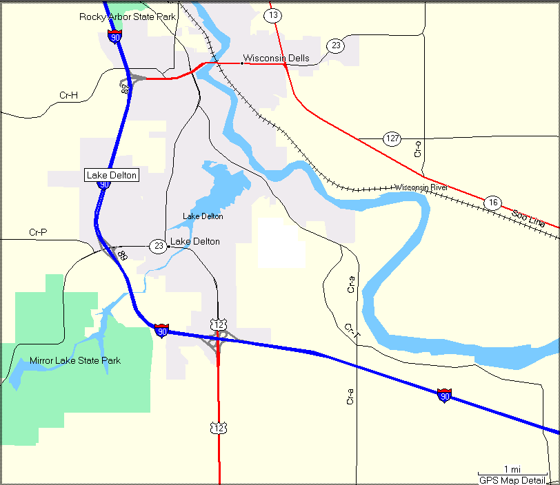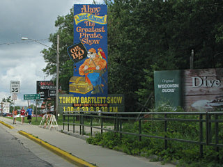 The next day I checked out, reconfigured the car a little, and began the second major phase of the journey. Here the serendipity thing started for real -- the random "come what may" wandering part, with the only goal to reach the other end of South Dakota later in the week. Some Hybridfest folks had suggested to go check out the Wisconsin Dells area as another tourist-trap sort of place that had undergone some abrupt and interesting changes recently, and it was pretty much on the way so I headed northwest up Route 12 which would bring me closer to I-90 farther up. |