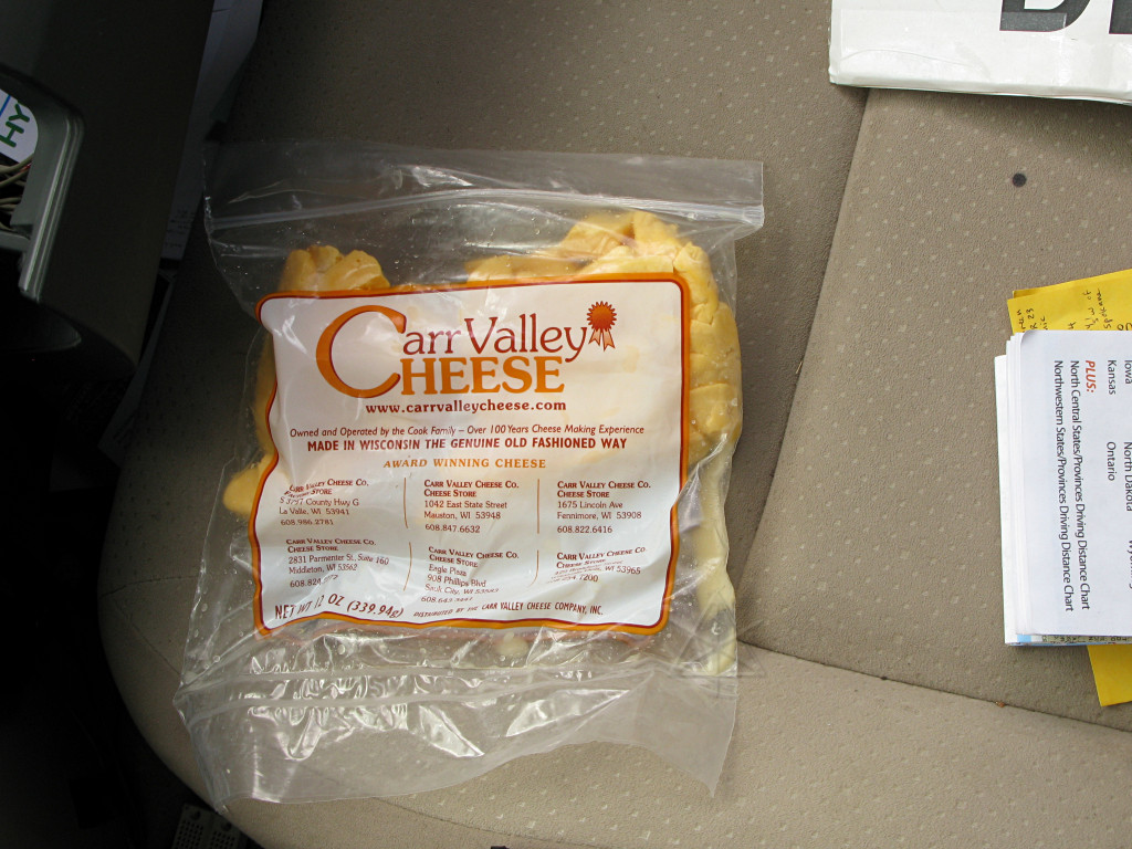 I finally did find the cheese outlet and got not only the story on my rubbery proto-cheddar, but also learned that one of Carr's major cheese factories is also in Mauston and offers tours. Aiieee, yet another side-trip I could make! But I declined at this point, and got back on the highway to keep rolling. It was time to quit goofing around and start putting some serious miles behind me. I wanted to at least make it into another state before nightfall. |