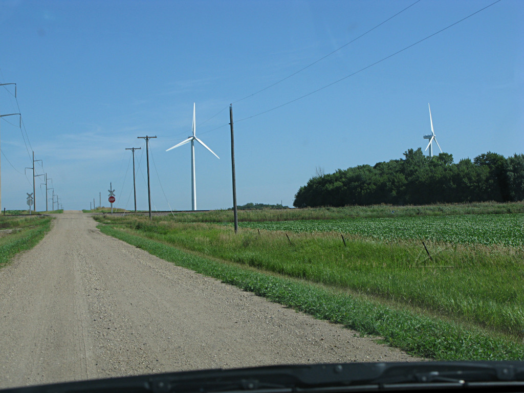 I discovered that afternoon that Minnesota in fact has some serious clue about wind energy, as I continued seeing evidence of large windfarms almost all the way through the state. That little leaning tree was speaking the truth about the locale, as in fact does the map from this article that I dug up later on. I had apparently entered the country's central "wind belt". |
