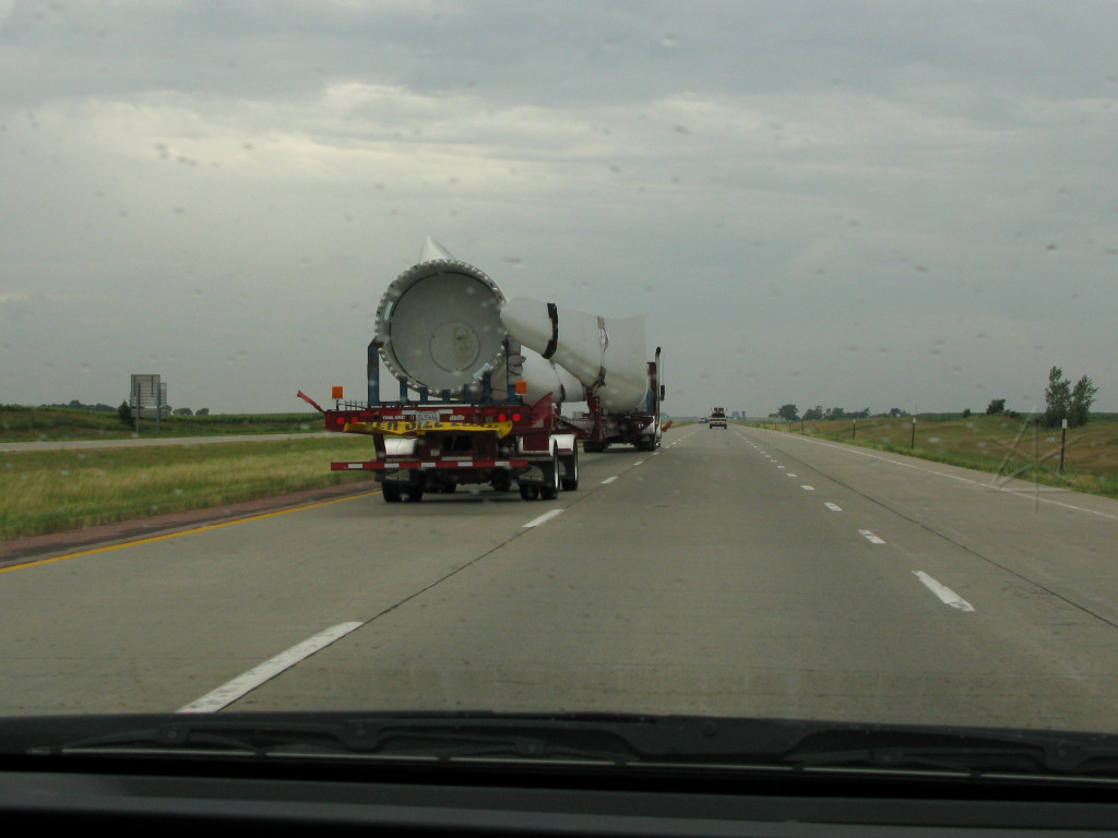 But people react strangely and often stupidly to anything new, witness all the unfounded resistance to the Cape Wind project back home. Farmers have objected to harmless power transmission lines run across the land; there are even songs written about the struggles over new infrastructure -- in Minnesota, even. But this setup is apparently a privately funded project and an agreement with a private landowner, and other than the grid hookup there isn't any part of it that needs external approval. And frankly, anyone who thinks these towers are an eyesore needs their sense of aesthetics ripped out and replaced. |