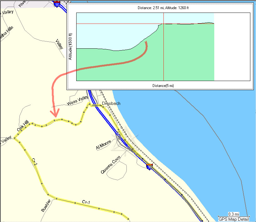 where the map says "Oak Hill", I came up behind a bicyclist on a