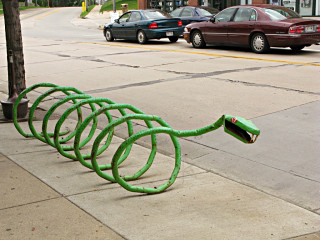 An amusing bike rack spotted as I came into the eastern end of town. |