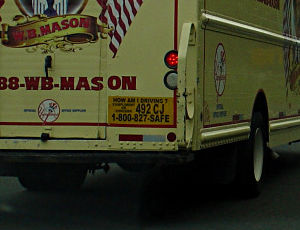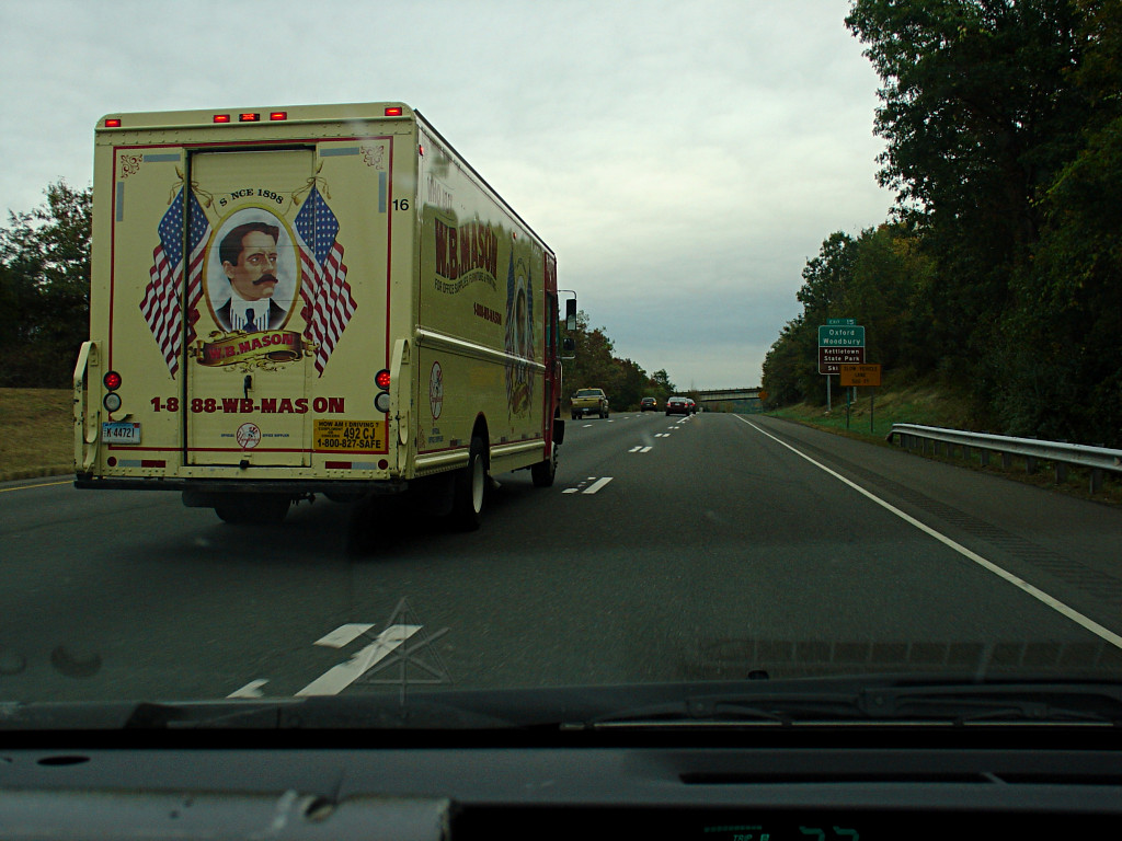 This one learned the hard way that it's not much use trying to draft a Prius in the right lane of I-84 in Connecticut. Refused to go around for quite some time, and would not back off in the meantime. Called in both to the third- party agency on the "how's my driving" sign and W.B.Mason itself, with the obvious answer being "lousy and downright scary".