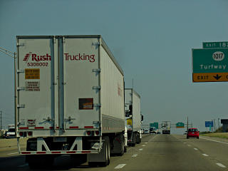 Dispatchers are generally *very* interested in getting these reports, since they have no idea what's going on out on the roads and most people don't have the wherewithal to call in reports for bad behavior. I would like to once again propose a new motor sport: truckspotting. Teams of two ordinary citizens go out and drive the highways with a camera and some sort of internet-enabled wireless device usable by the passenger. When people who are supposed to be professional drivers are observed behaving in an overtly aggressive manner like this, evidence is collected and efforts to contact the company's fleet managers are made. It is generally fairly easy to find them, either by using numbers posted on the trucks or finding the company's main number, and asking for "whoever manages your trucks and drivers". A full report including specifics about the vehicle is given, and pictures can optionally be posted or emailed. Law enforcement has really fallen down on this job, even though it could really be one of the easiest sources of revenue out there. Go figure. But if enough people went out and did this and word got around that a new and difficult-to-detect means of enforcement was happening, maybe the rudeness that seems to have developed among the trucking industry over the past ten years would begin to reverse itself. It needs to be made clear to these guys that positioning a large heavy vehicle like that any closer than THREE seconds behind another makes it into a dangerous weapon and is flat-out unacceptable. Safer driving practice would also save these companies a lot of fuel -- this is well known in the trucking industry, but often ignored and/or falls victim to an excessively tight logistics schedule. That's got to change.