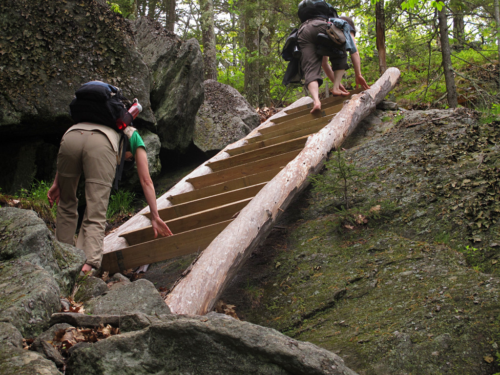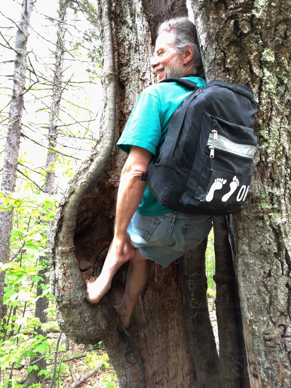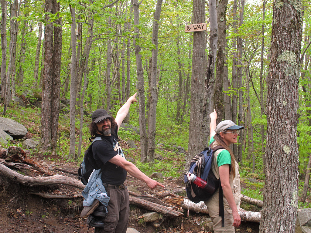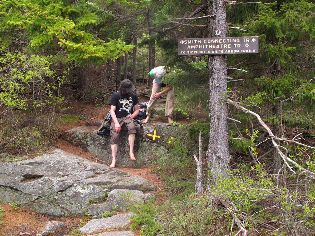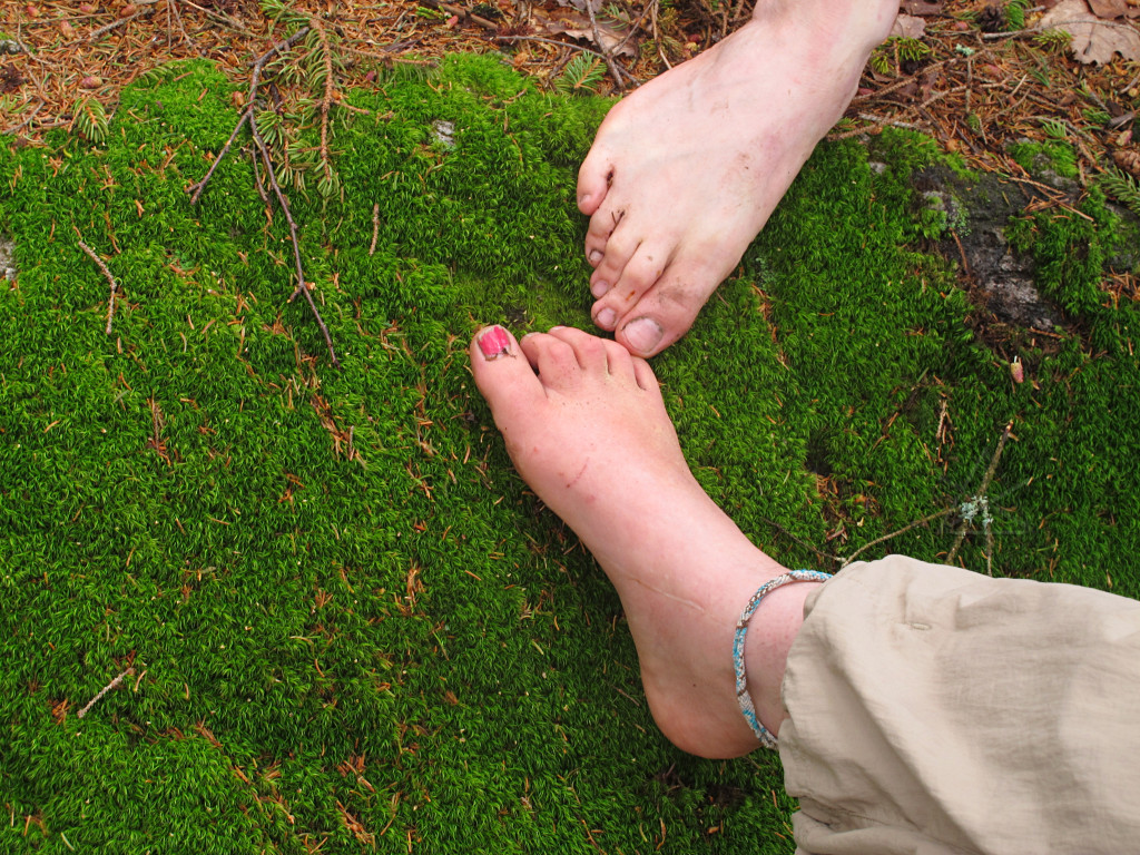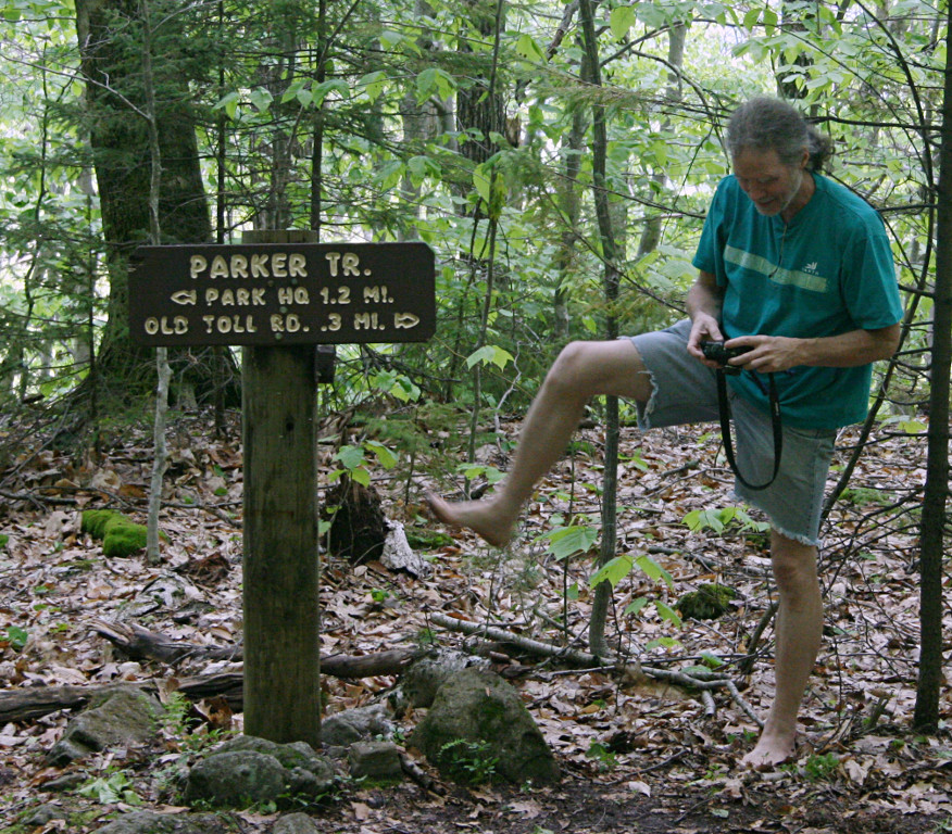 ![]() Barefooting Monadnock is certainly not a new concept; plenty of results come up from a search on "monadnock barefoot" and they all describe it as being pretty awesome fun. One account suggests that some of the park's own rangers even get their share of shoeless miles in. So we did a little planning and google-earthing, and figuring that it was likely to be a pretty crowded weekend up there, I endorsed the idea of a slightly longer but less-traveled route to make a nice loop of maybe 4 and a half miles. That might have been a bit ambitious -- not from anything to do with our feet, but just from hike length and elevation change. As it worked out our group split a couple of times; a subset headed back down via the green dots and another bypassed the summit via the blue ones. But bagging the peak wasn't the sole aim here; the idea was to get out into the woods and just have fun with it. There would be plenty of vertical to keep everyone happy. |