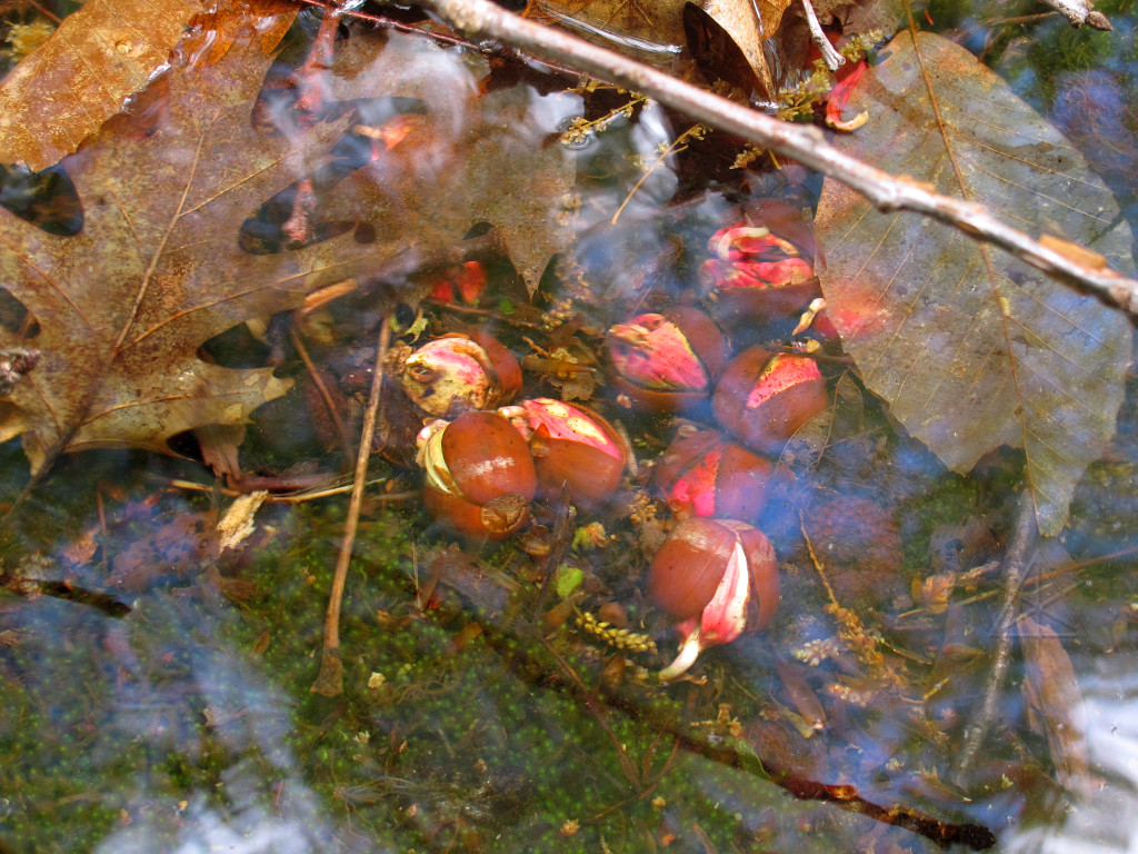 We found acorns trying to sprout and grow, but completely underwater in a tiny brook that crosses the trail. These probably weren't going to survive... |