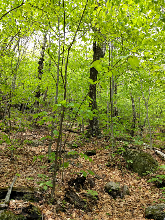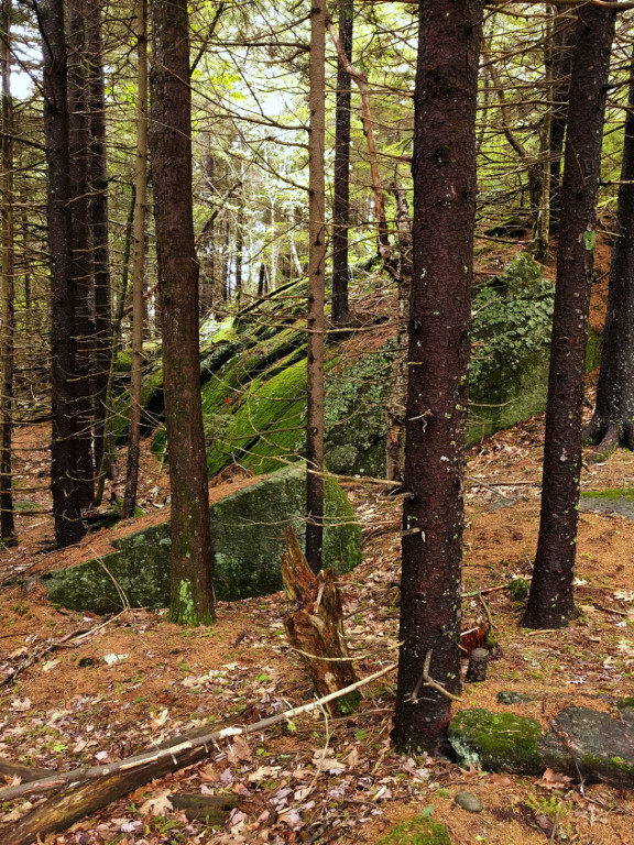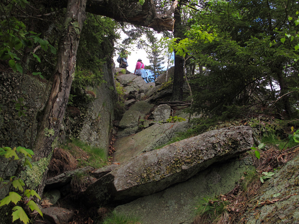 The rocks and trees form sort of a tunnel here, at the top end of which is a nice open knob. |