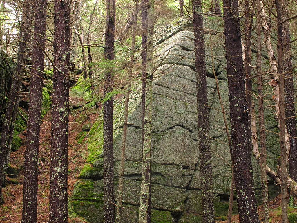 From an overlook point farther on we could see more of those very flat faces in the cliff; this is a pretty common attribute of much of Monadnock's rock. |