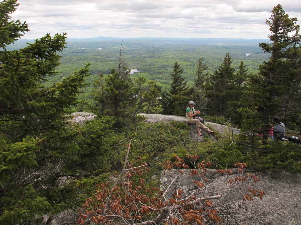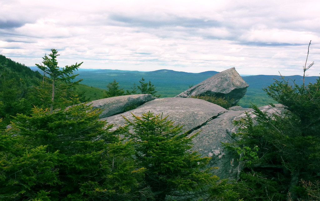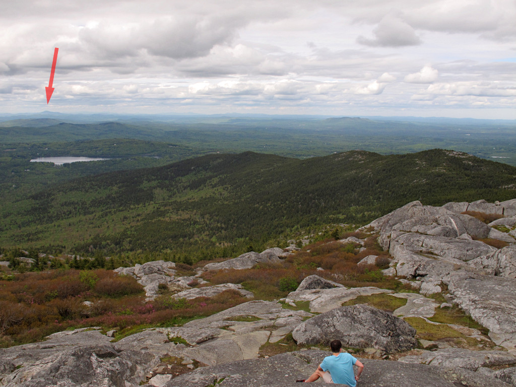Having been on the southeast side of this thing all morning, I could now finally get a view to the north. Despite the overcast, the air was clear enough to spot Mt. Washington. |