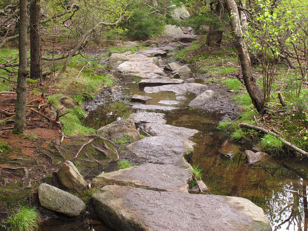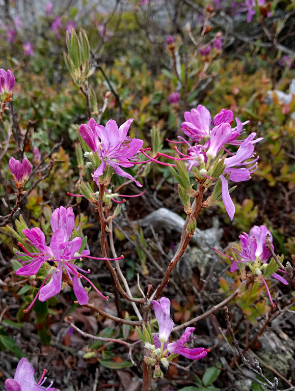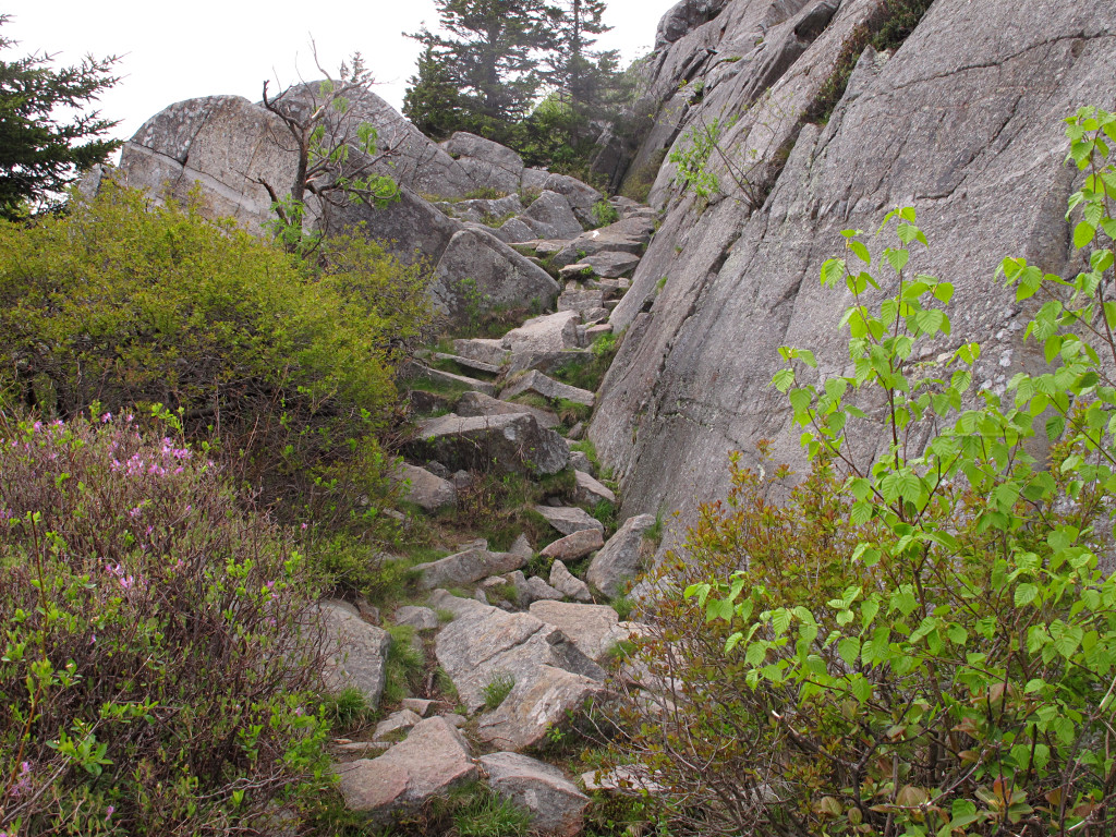 Meanwhile, my companions were having a pleasant and somewhat flatter amble along the Smith Connector, with lovely stretches of slab and plenty more of that wonderful view. Pockets in the rock are full of azaleas and a species of rhodora that our attending bio-nerd had not seen before. |