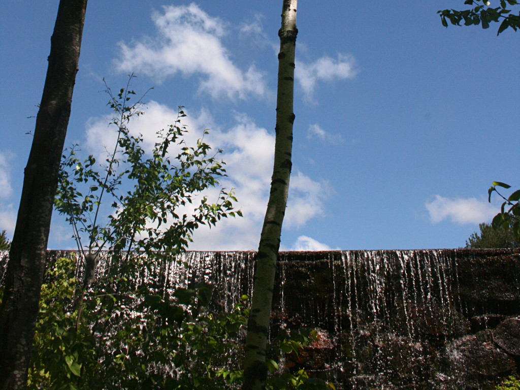 There's a small level-control dam at this end of the reservoir; we took a quick detour up top. The valve structure has steel plates loosely laid over it -- a little wonky to walk on. |