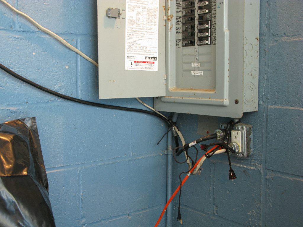 The electrics look scary as usual but over the last couple of years, things have actually gotten much more safe and sensible. Circuits have been added and outlets split up, and at this point we've even got a circuit map of available power around the park. I make sure to do primary distribution on cables that can take the full current loads, before anything splits off. |