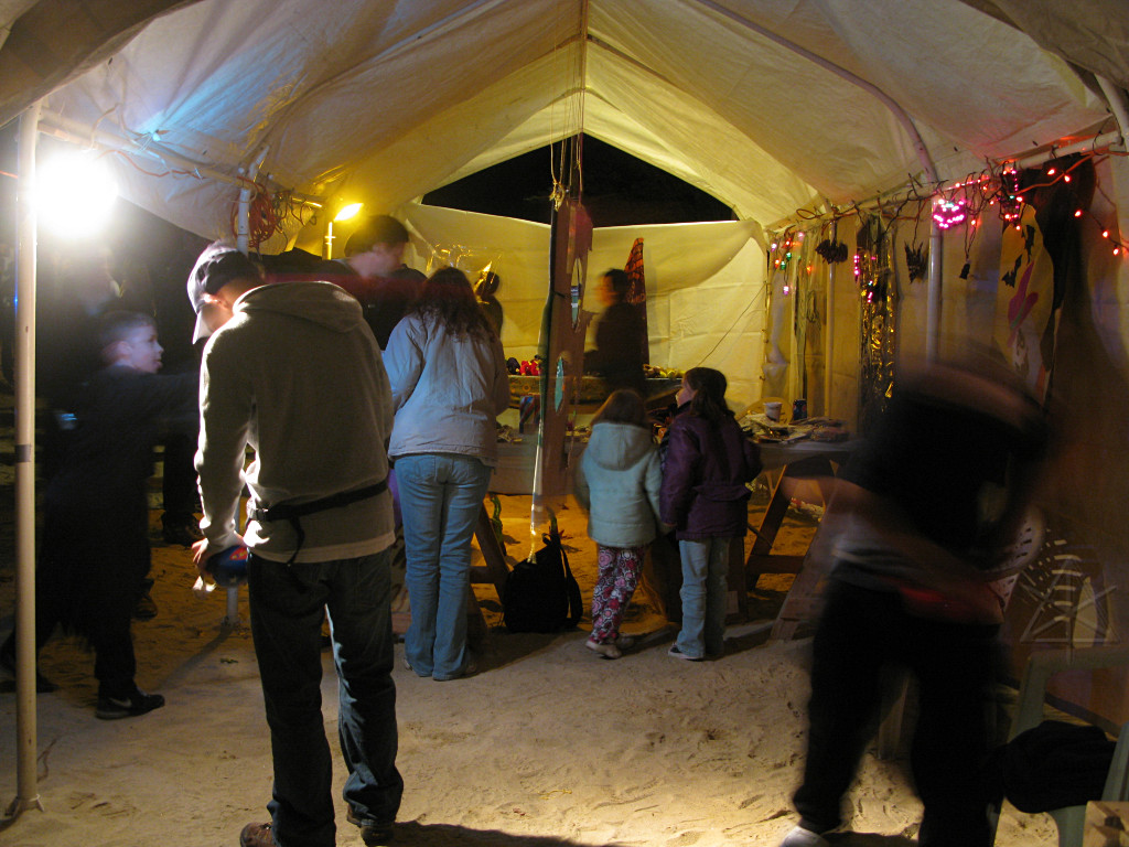 The usual treasure dig, set up with the booth in the middle of the area instead of at the outer periphery this time for better crowd flow. |