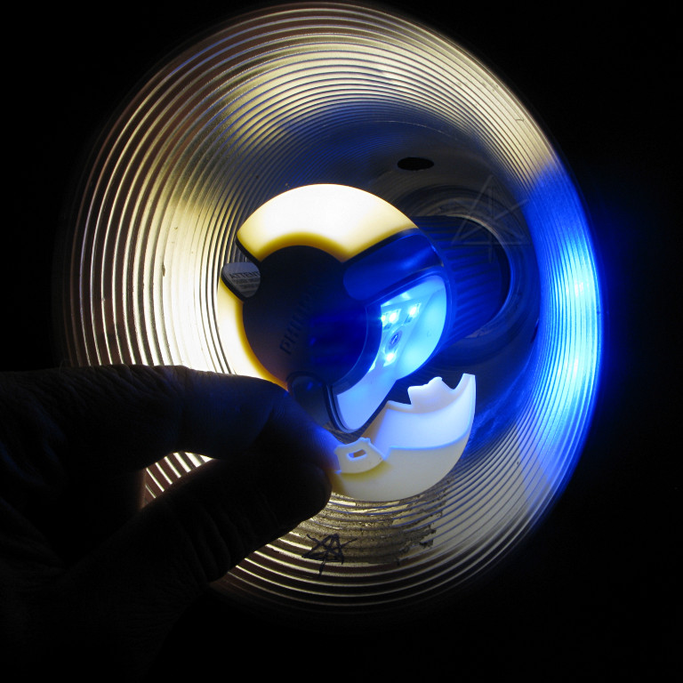 ... which was lit up very vividly blue from the 5000+K LED mirror-ball lights and the Philips ersatz UV light I brought back in. |