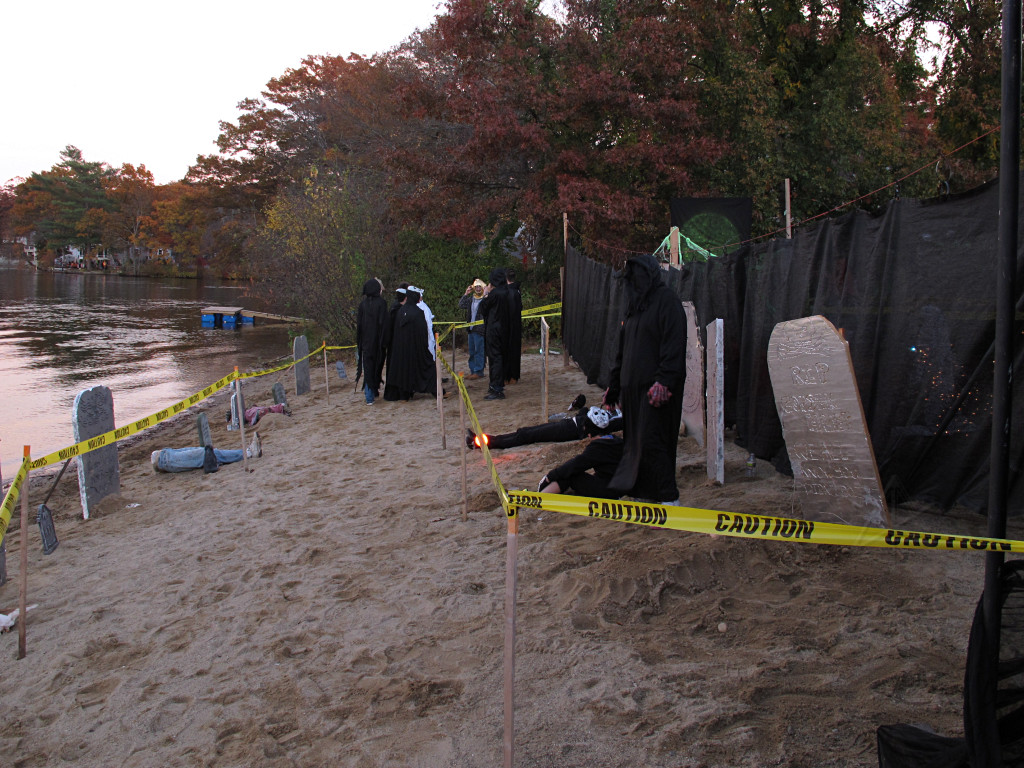 I think only the graveyard had a few hints of Christmas-y stuff, and everything else was pretty much status quo. We were fortunate to have gotten done with a brief but heavy nor'easter the day *before* the event, leaving a gorgeous albeit almost too warm Saturday in its wake that segued into a lovely Indian-summer evening. Possibly due to that, the event was pretty well-attended.